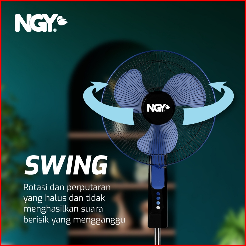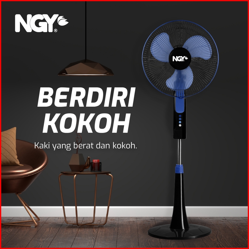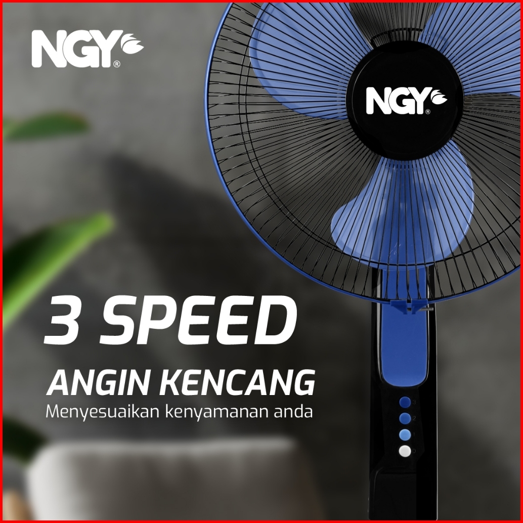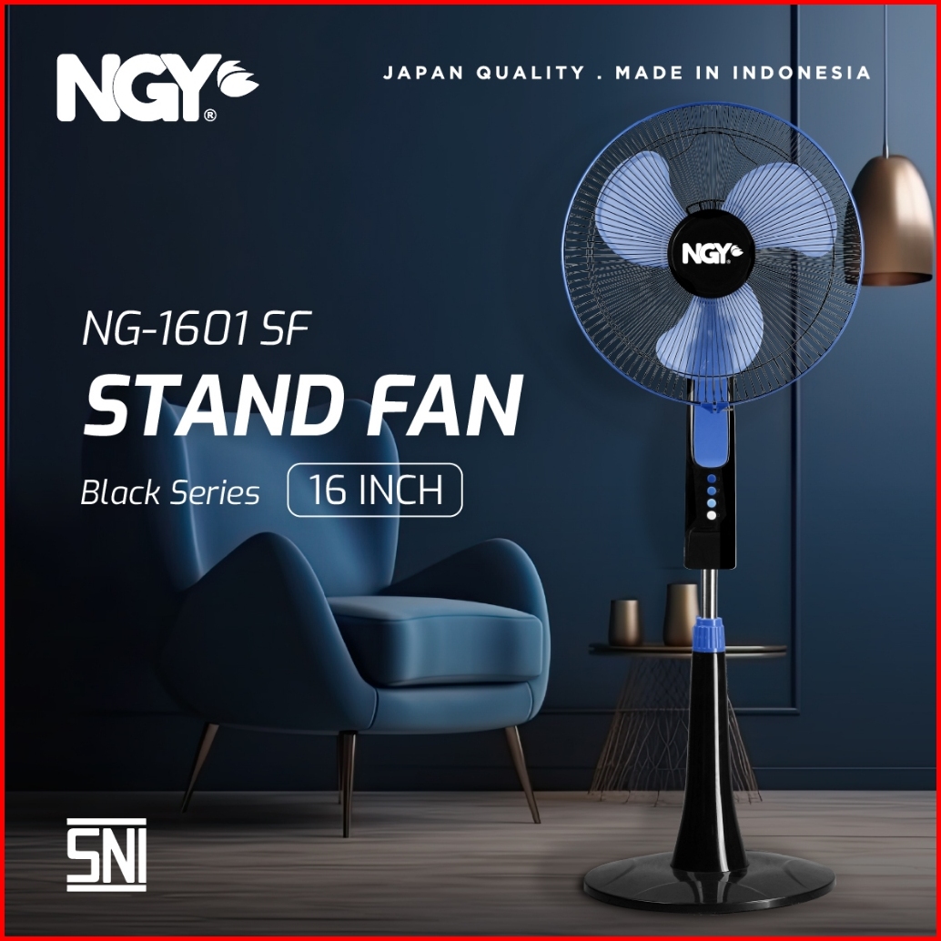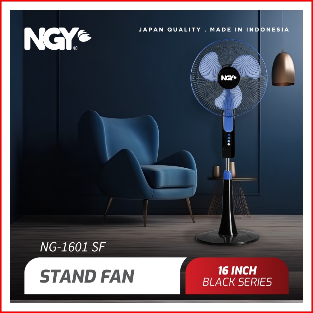 Ngy Ng-16sfb Kipas Angin Berdiri Stand Fan 16 Inch Hitam Glossy Ngy