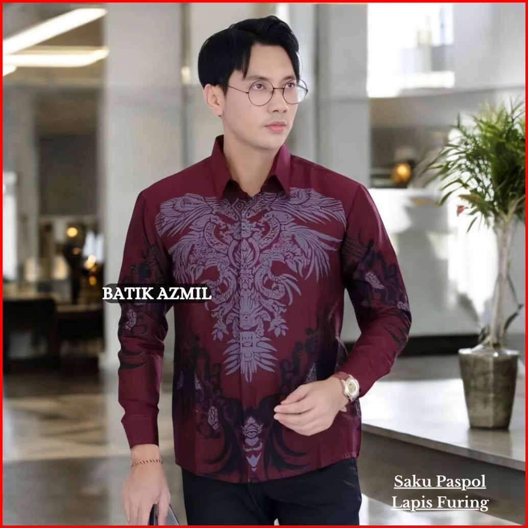 Batik Pria Lengan Panjang Lapis Furing Batik Azmil Hrb026 Motif Keratonan Kode 005 Size M L Xl Xxl Reguler