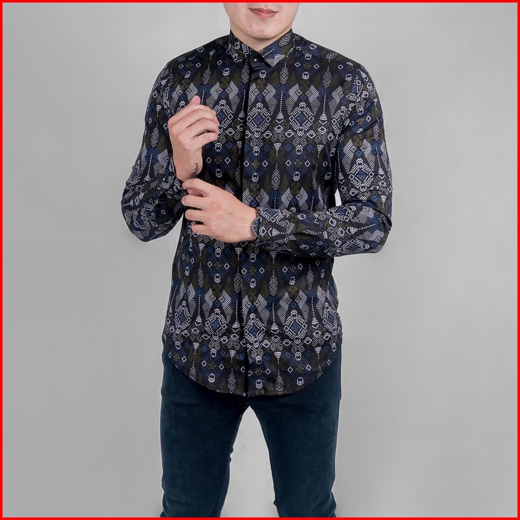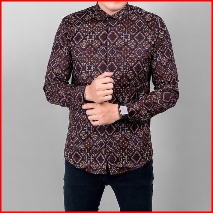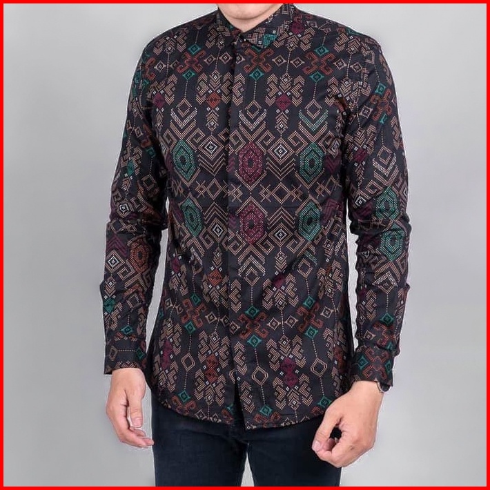 Dgm Fashion Kemeja Batik Hitam Songket Lengan Panjang Batik Songket Premium Pria Casual 002 A