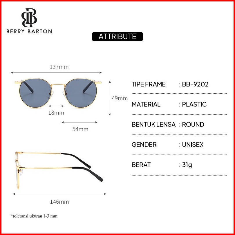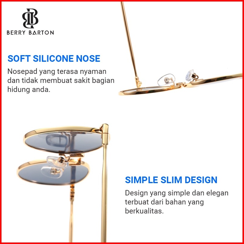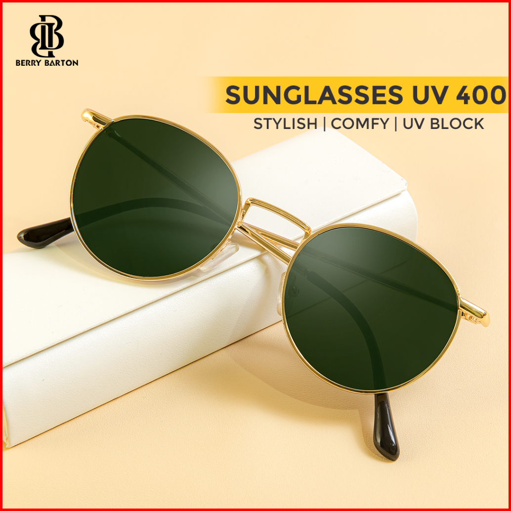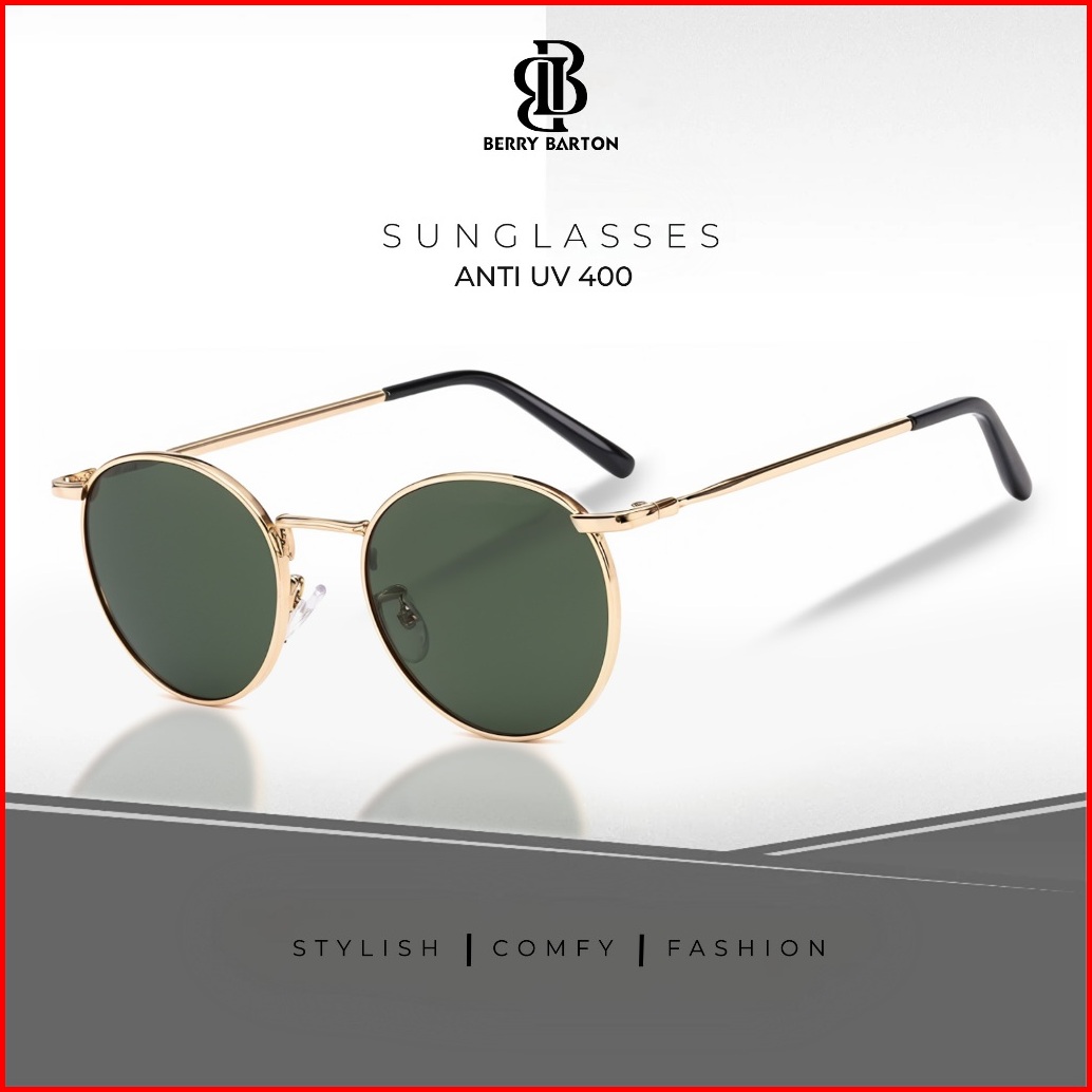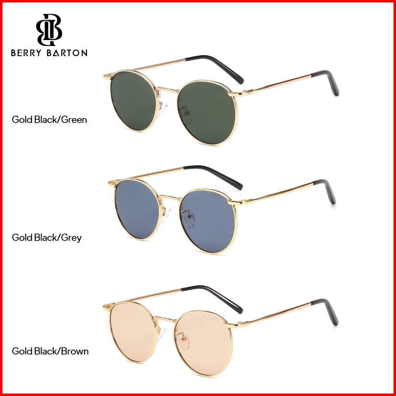 Berrybarton Kacamata Hitam Bulat Metal Fashion Sunglasses Anti Uv Pria Wanita 9202