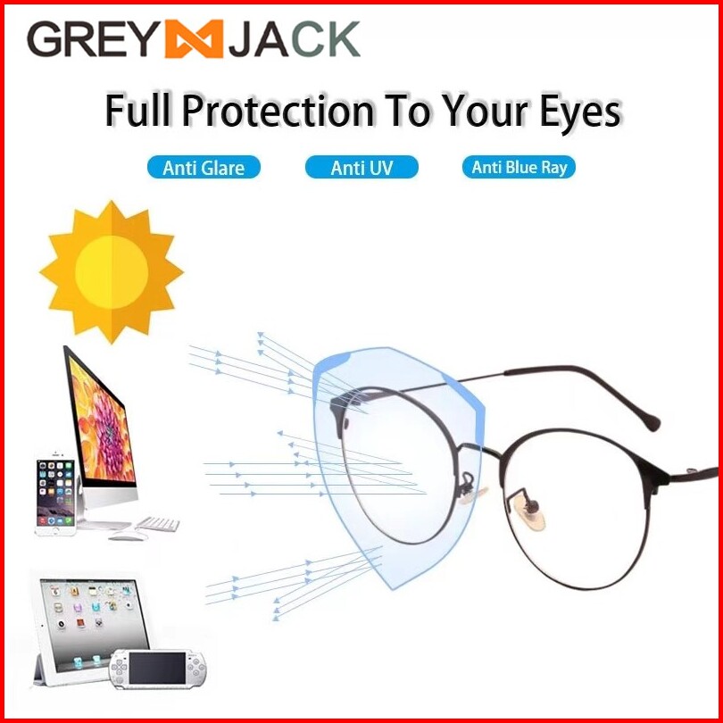 Grey Jack Kacamata Photocromic Anti Radiasi Blueray 3in1 Anti Uv Wanita Pria Terbaru Cowok Baru Metal Bulat 9180