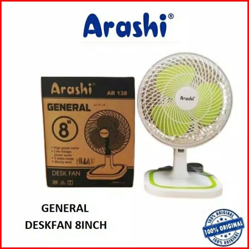 Kipas Angin Meja Listrik 8 Inch Asli Arashi Bisa Putar Kiri Kanan