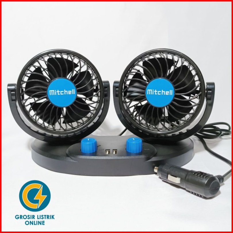 Kipas Angin Mobil Mitchell Double Fan 12v 24v Double Headed Usb Charger 12volt 24volt 12 24 Volt V Truck Pick Up Kyzuku