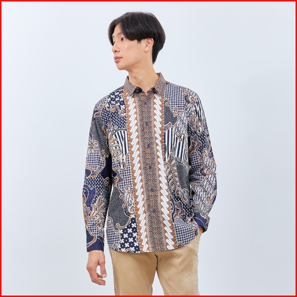 M231 Kemeja Pria Batik Panjang Navy 3061a