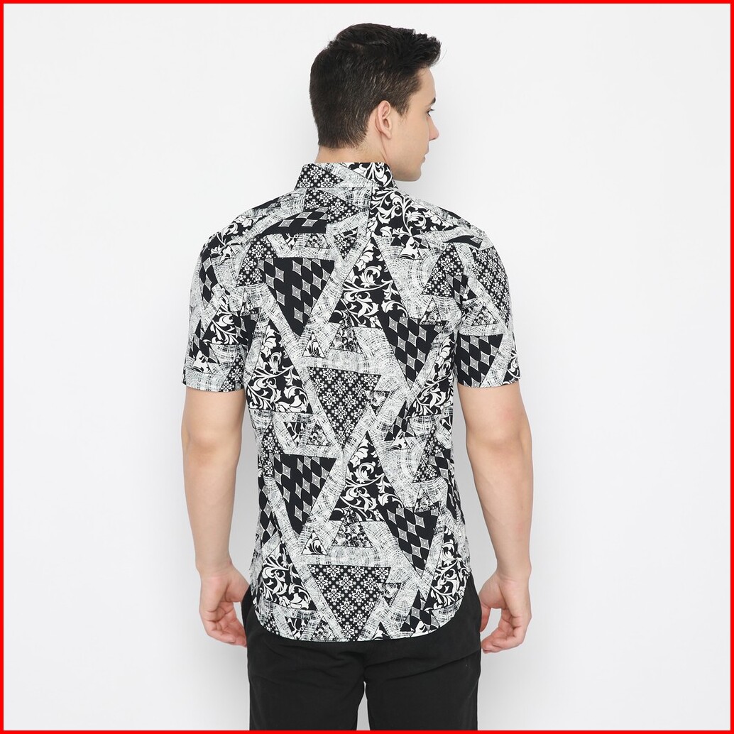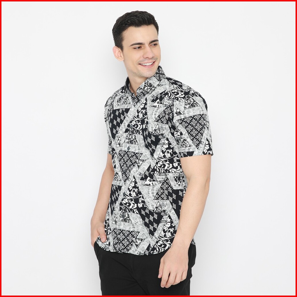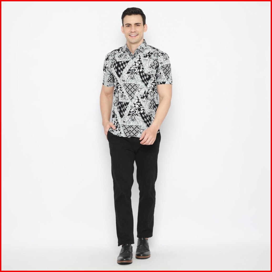 Platini Kemeja Batik Pria Lengan Pendek Katun Hitam 73171