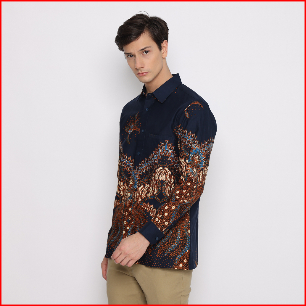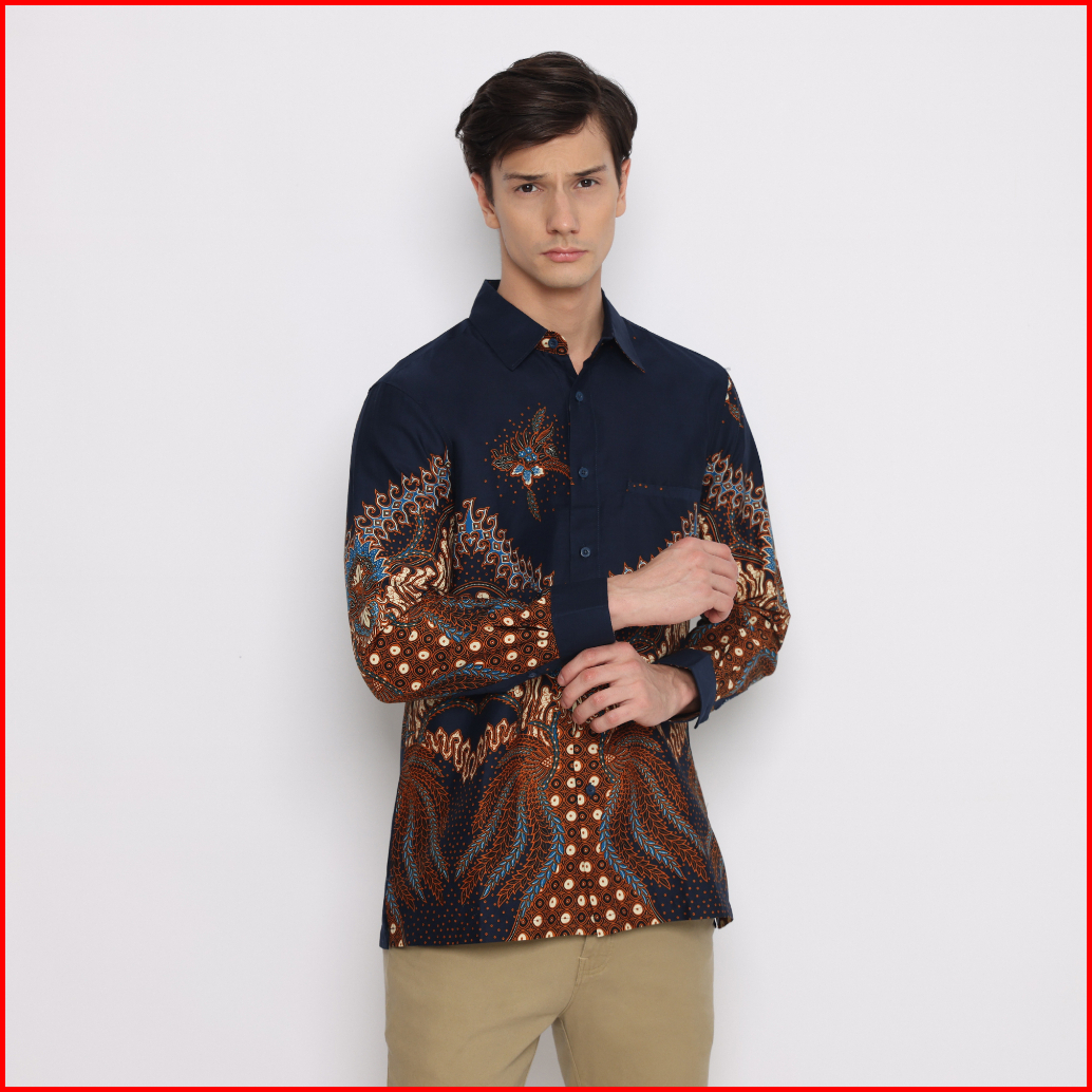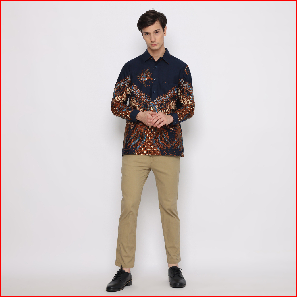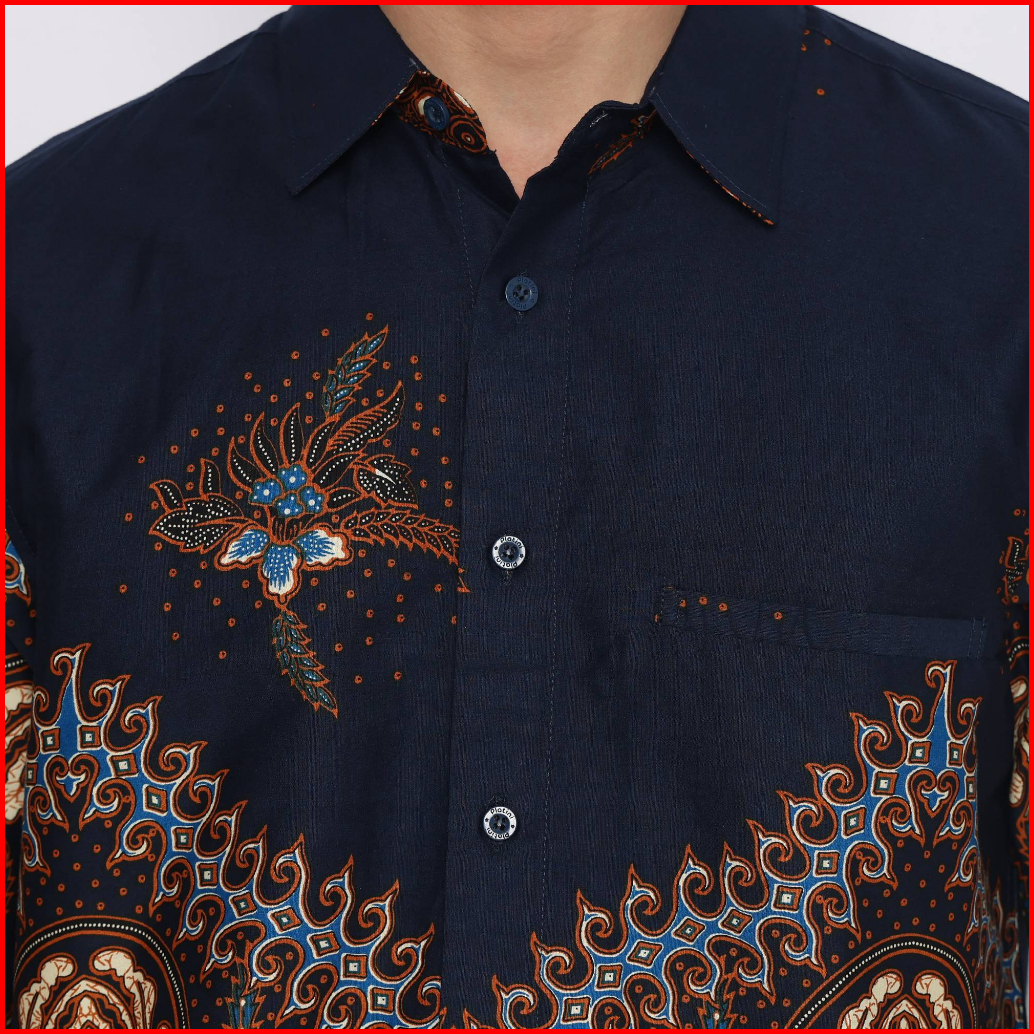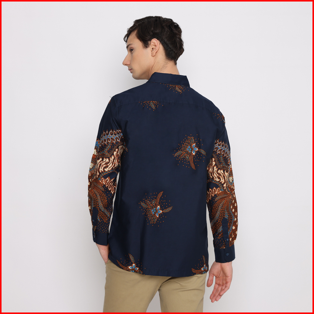 Platini Kemeja Batik Pria Lengan Panjang Katun Navy 36041