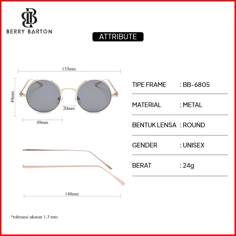 Berrybarton Kacamata Hitam Anti Uv400 Bulat Modern Outdoor Sunglasses Pria Wanita 6805