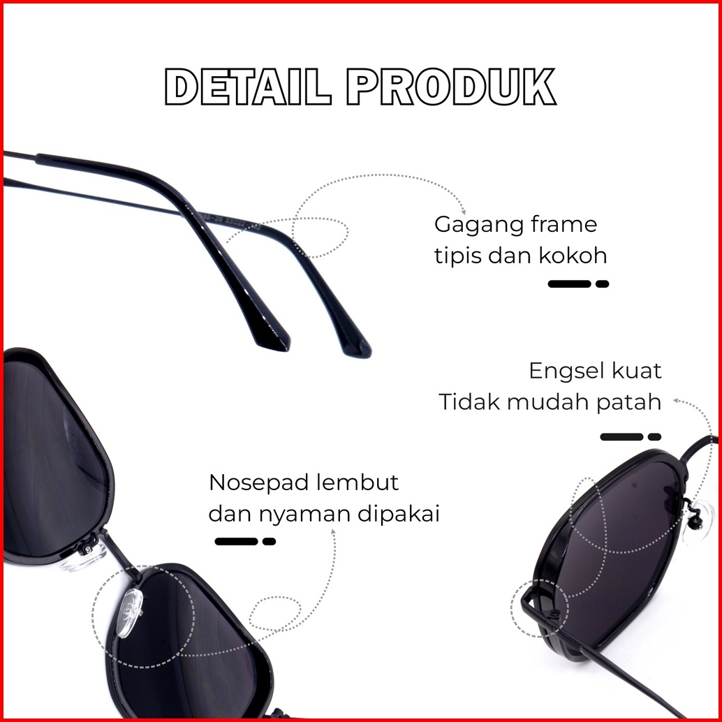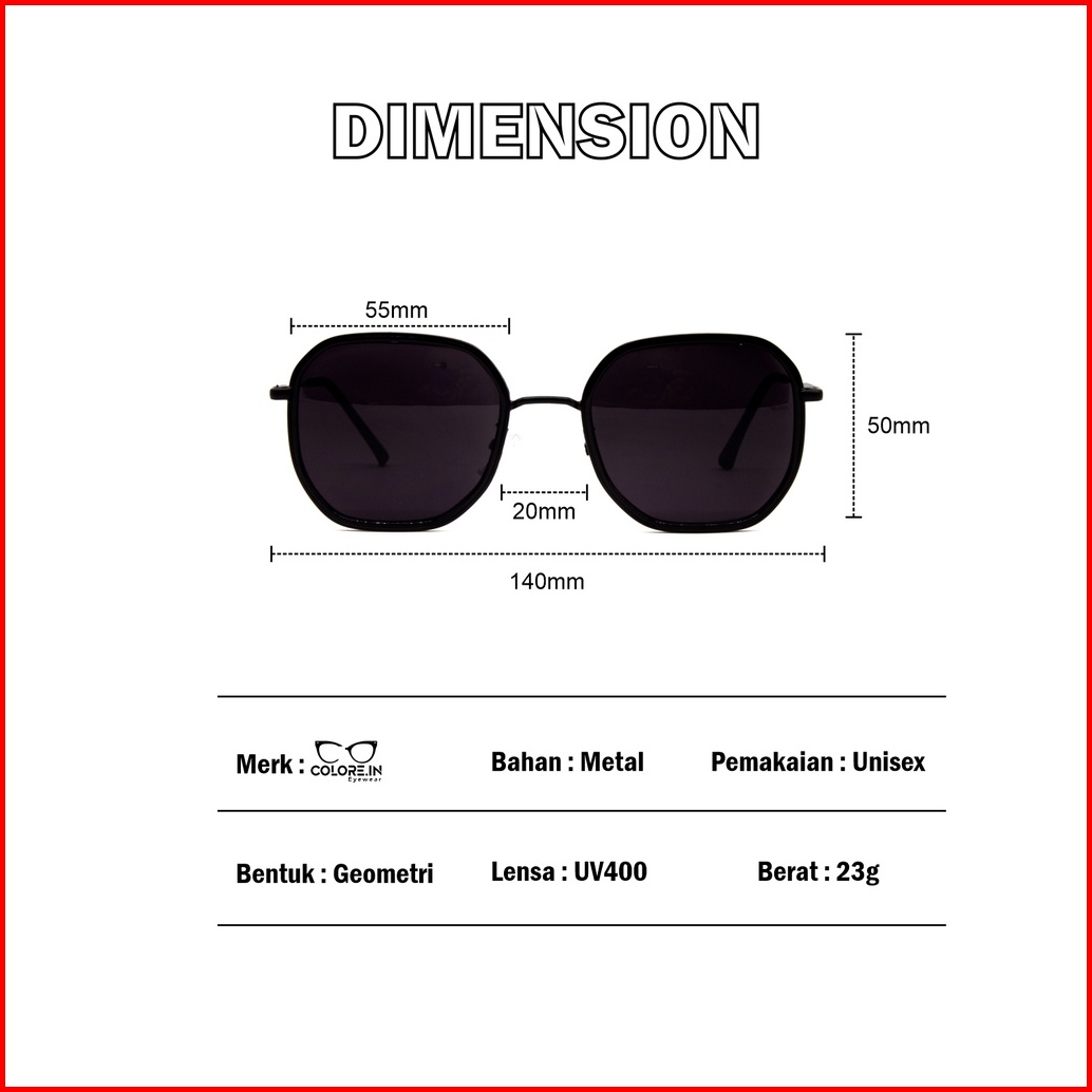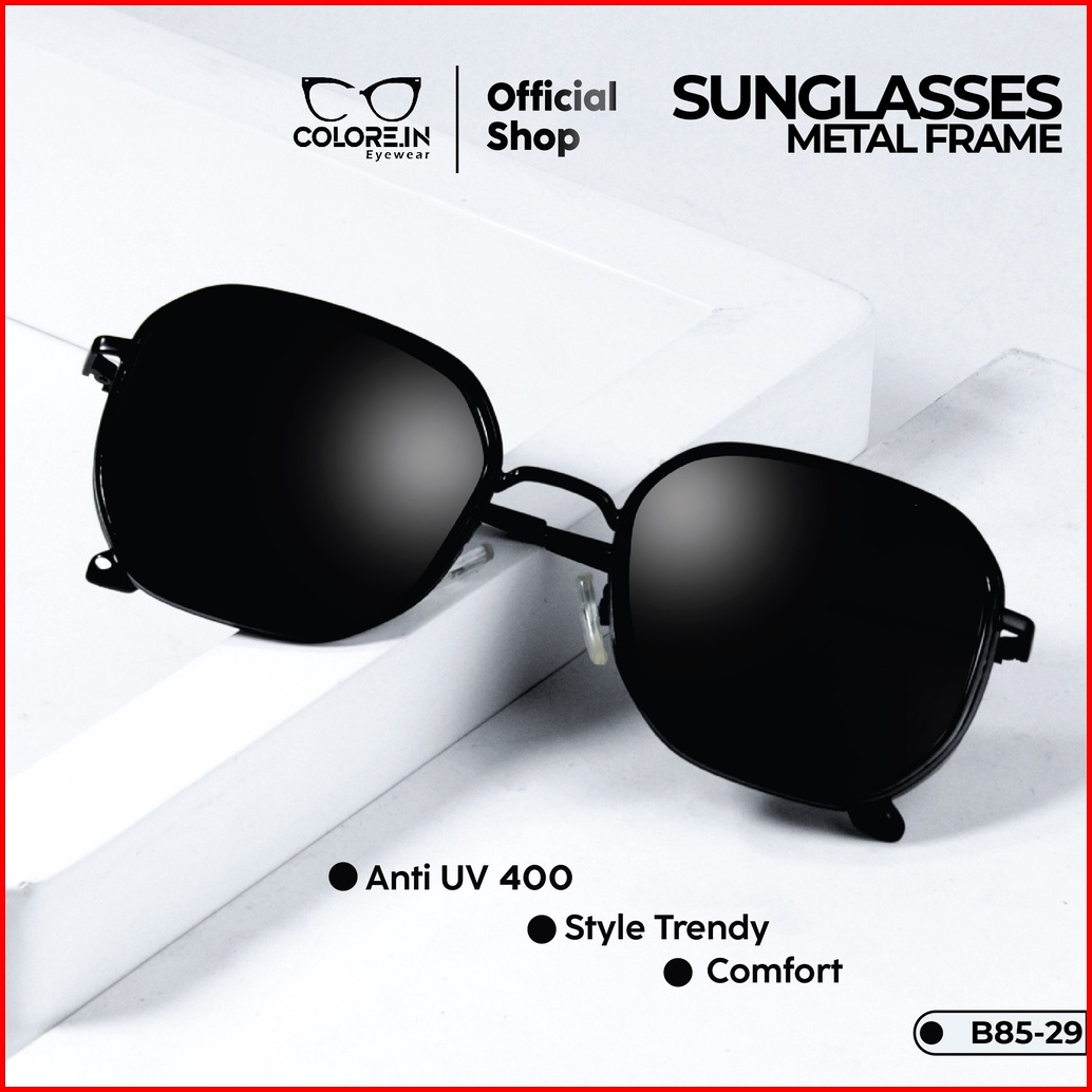 Colore.in Kacamata Hitam Sunglasses Fashion Metal Geometri Pria Wanita Unisex Uv400 Slim Trendi Korean B85-29