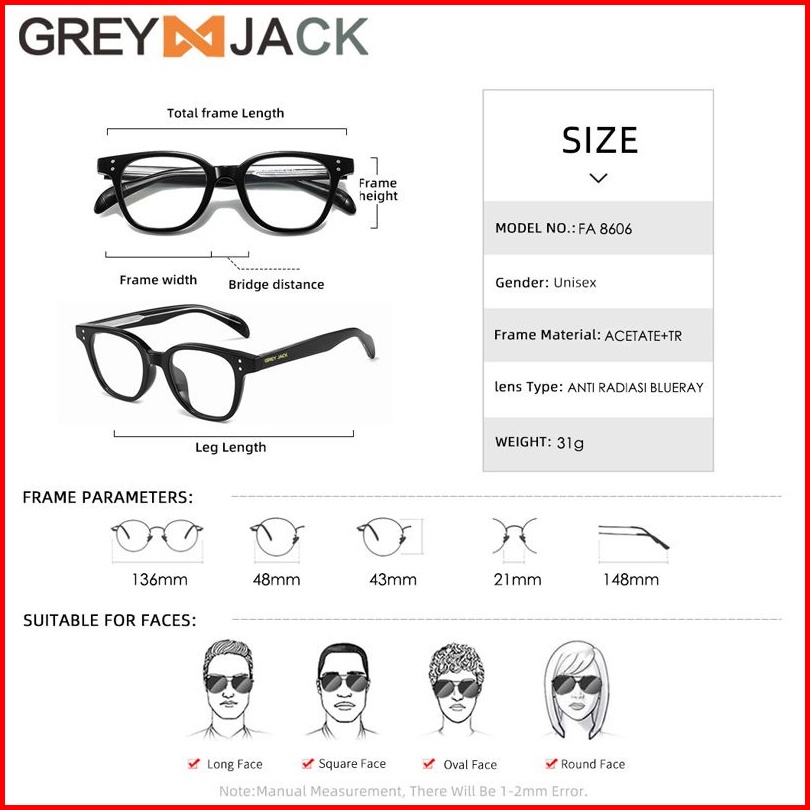 Grey Jack Kacamata Antiradiasi Blueray Style Modern Acetate Ringan Dan Simple Bisa Minus Fashion Pria Dan Wanita Dewasa