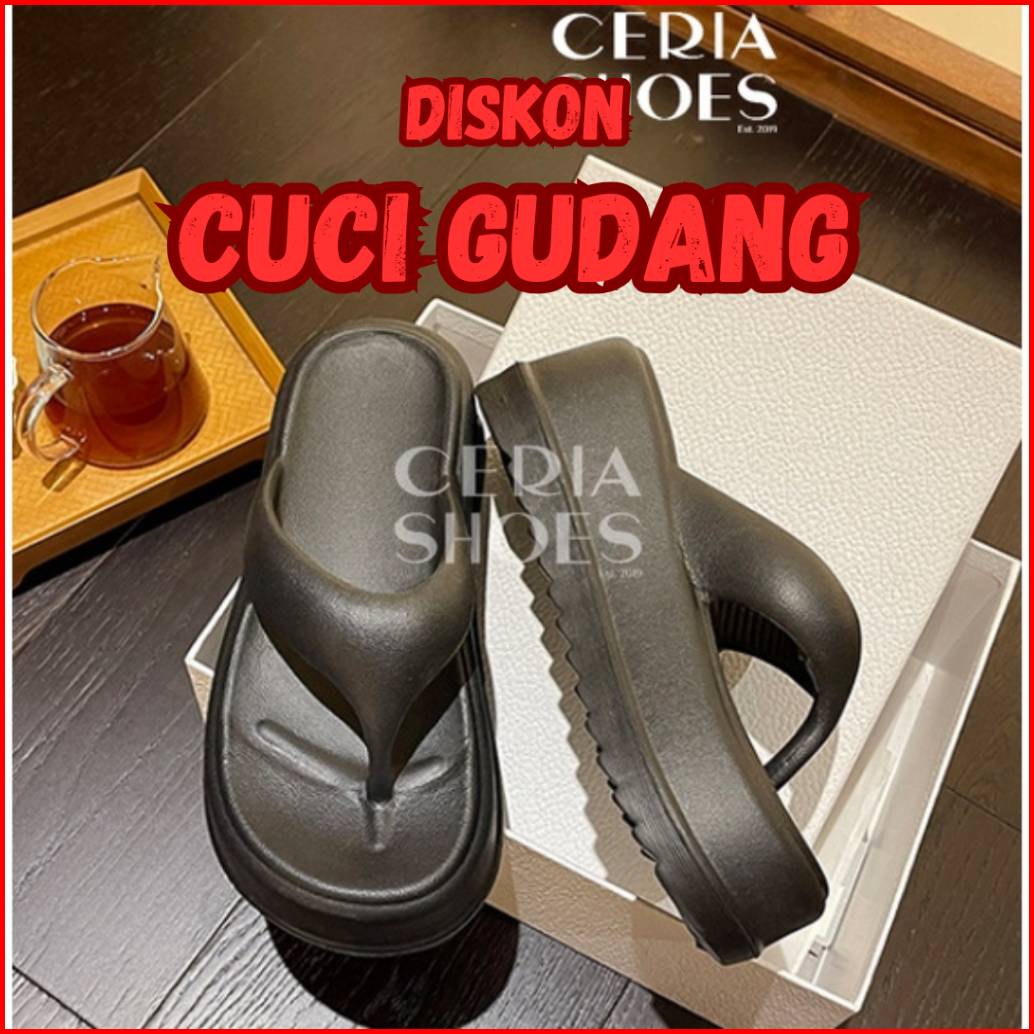 Sale Eva Sandal Jepit Wanita Wedges Hak Tinggi 7 Cm Bahan Karet Import Ringan Super Soft Elastic Balance 7628