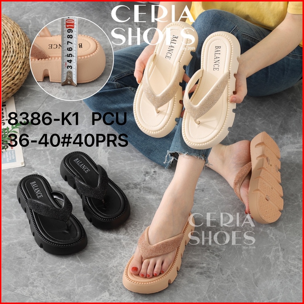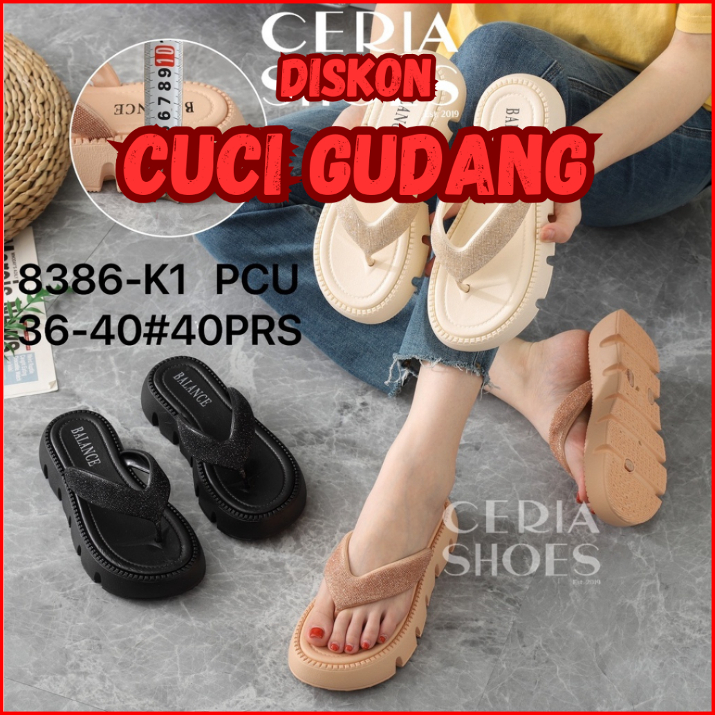 Sale Sandal Jepit Wanita Karet Pvc Rubber Import Sol Tebal Empuk Elastis Sol Anti Slip Balance 8386-k1