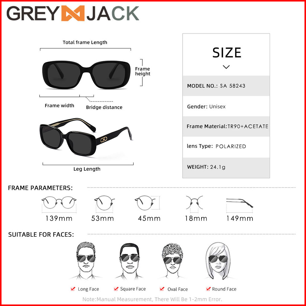 Grey Jack Kacamata Hitam Sunglasses Polarized Anti Silau Uv400 Acetate Tr90 Kotak Style Trendy Wanita Modis Keren Fashio
