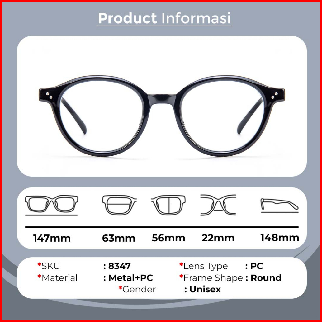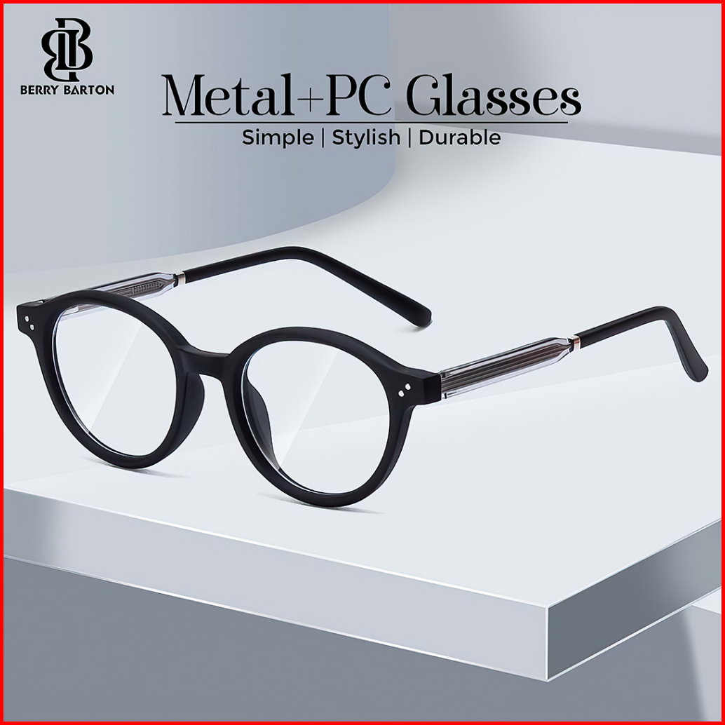 Berrybarton Kacamata Bulat Metal Pc Lensa Minus Anti Radiasi Bluercromic Pria Wanita Frame Anti Uv 8347