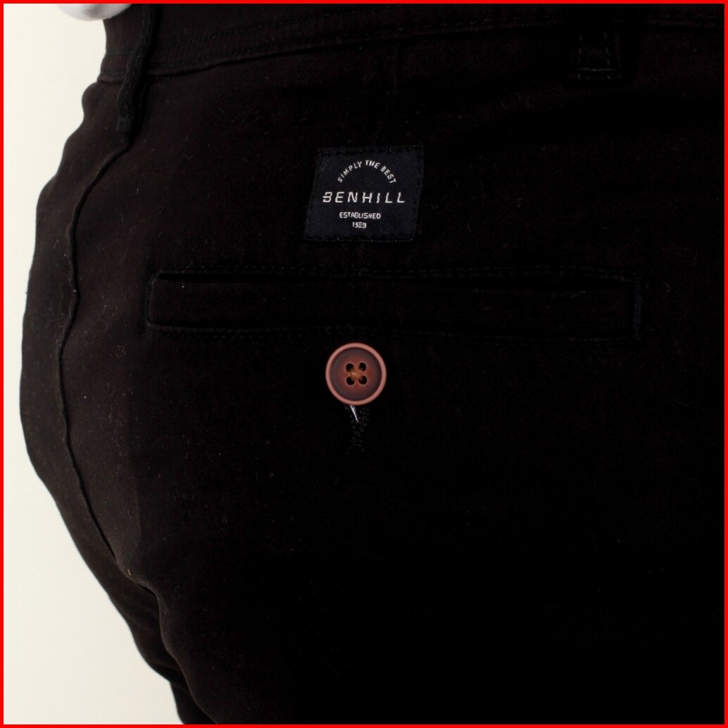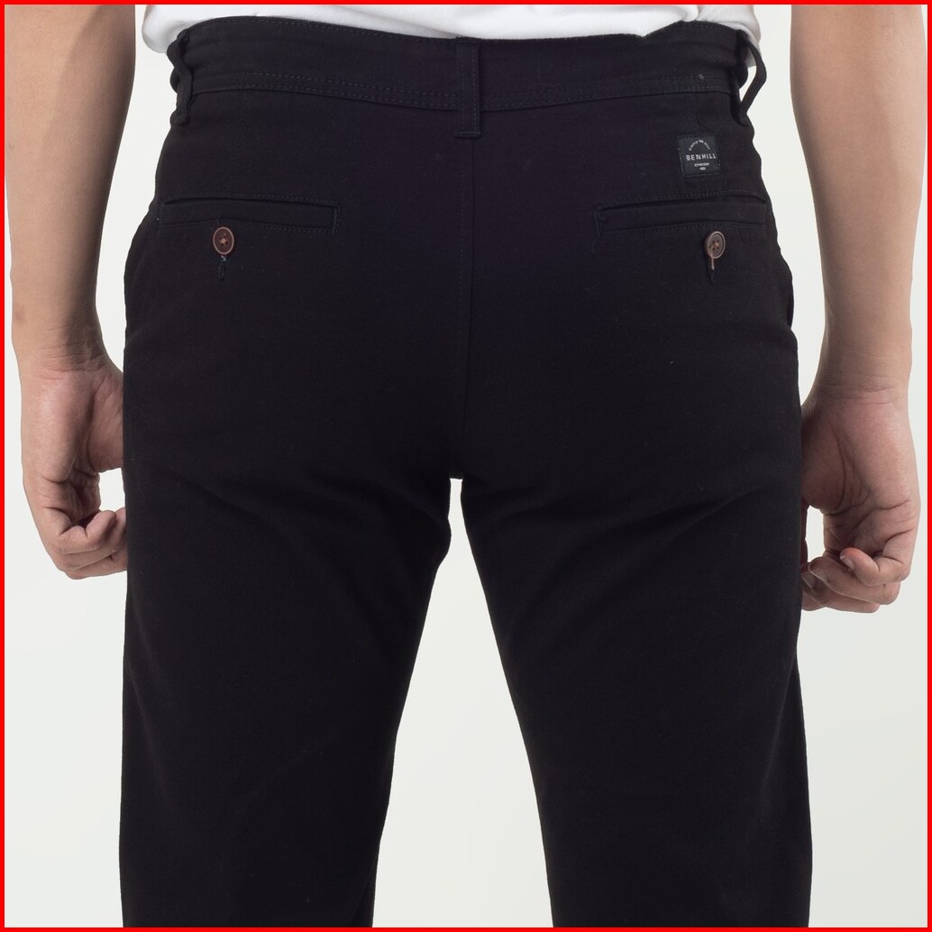 Benhill Celana Pria Panjang Chino Pants Slim Fit Katun Stretch Hitam 27712-13-322