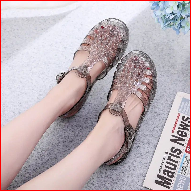 Wajib Turun 1 Size Sandal Wanita Balance Jelly Transparant Glitter Import Anti Slip 003 2043-1l