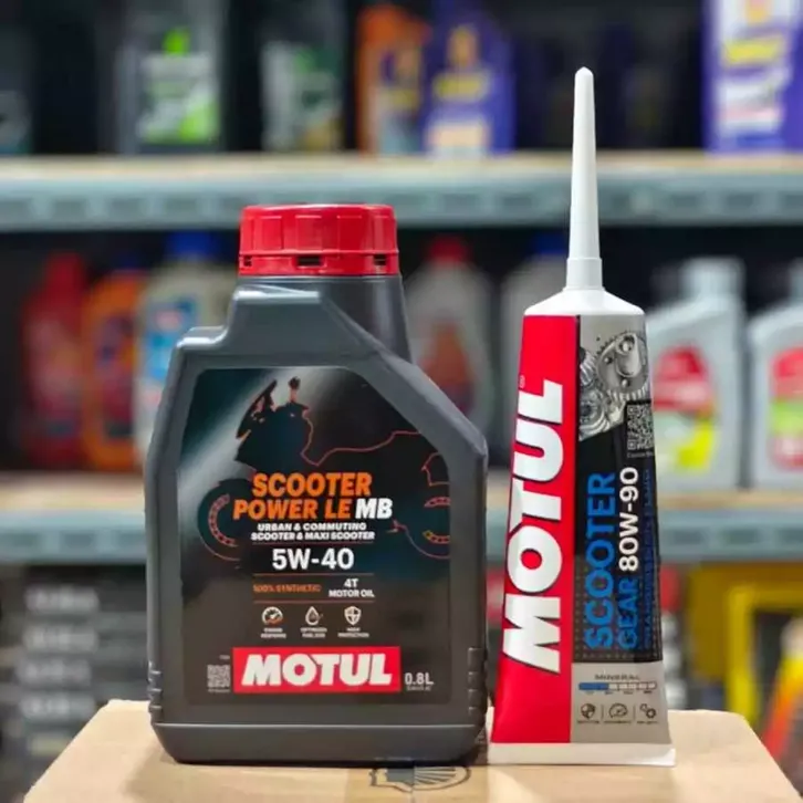 PAKET OLI MATIC MOTUL SCOOTER POWER LE 5W40 800ML+1 GARDAN MOTUL 120ML