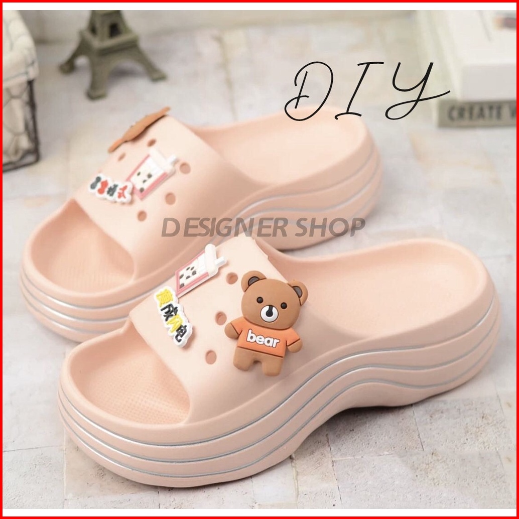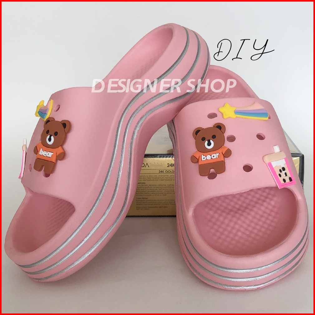 Sandal Wanita Jelly Fuji Motif Bear Sandal Wesges Wanita Platfrom Tebal Terbaru Sandal Rumah