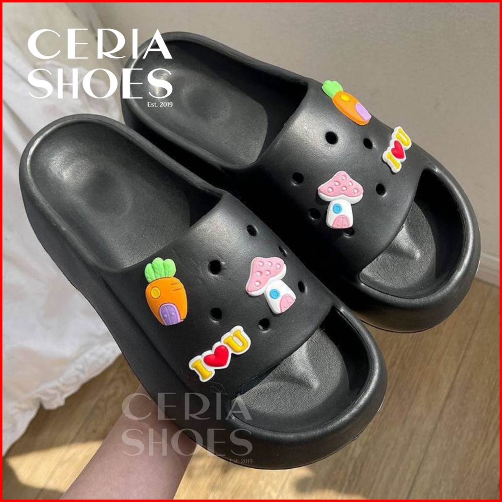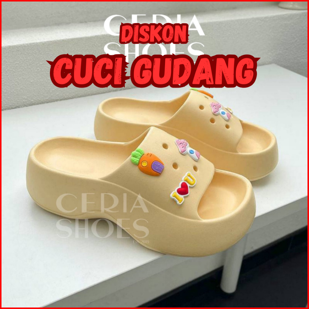 Sale Eva Sandal Slop Wanita Wedges Import Tebal 5 Cm Carrot Jabbitz Bahan Spons Super Ringan Empuk Elastis Non-slip Sole