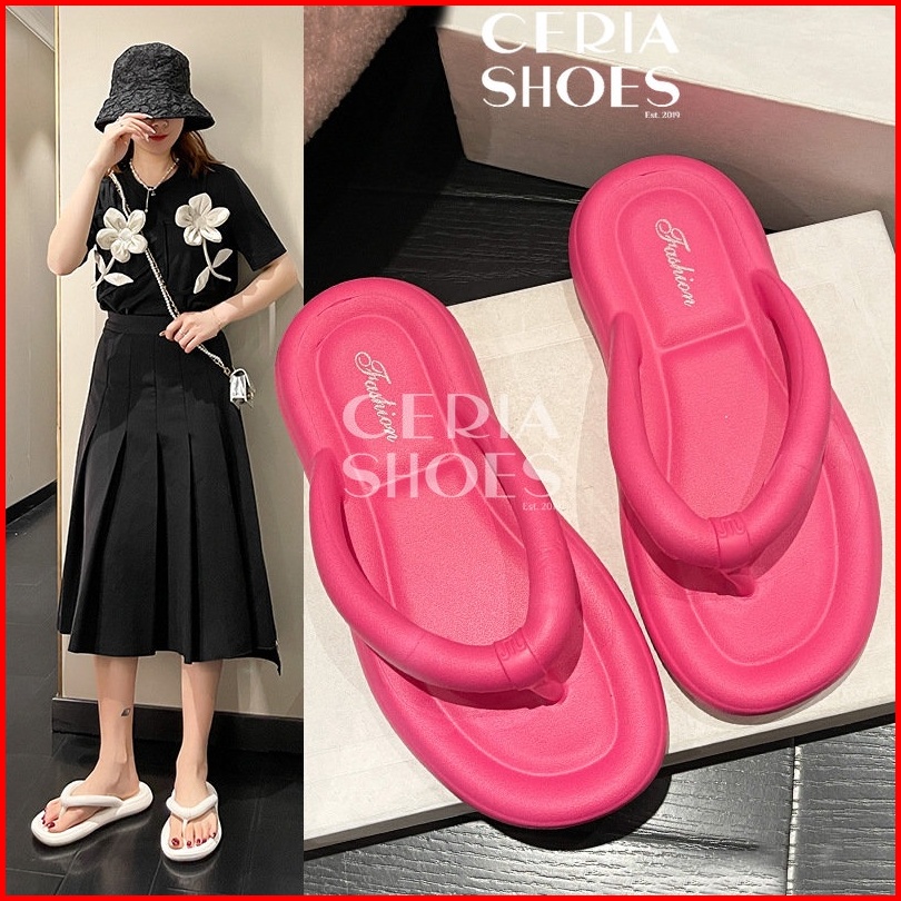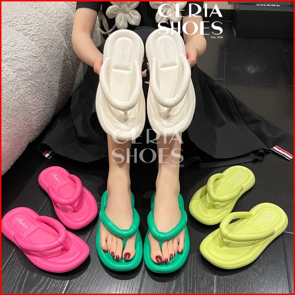Pvc Sandal Jepit Wanita Import Bangkok Bahan Jelly Lentur Empuk Motif Polos Sol Rubber Anti Slip Sendal Slippers Super S