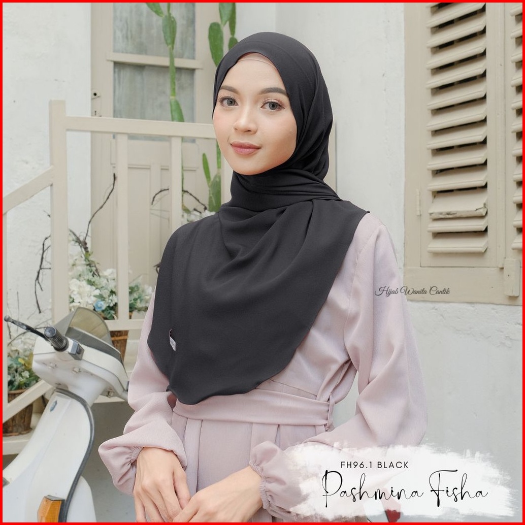 Hira - Pashmina Fisha Hijabwanitacantik Hijab Oval Malaysia Jilbab Polos Warna Hitam Pink Cream