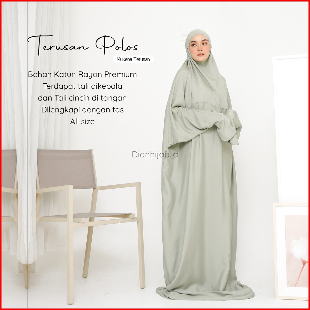 Mukena Terusan Dewasa Polos By Dianhijab.id - Bahan Rayon Viscose Mukena Travel Adem Nyaman