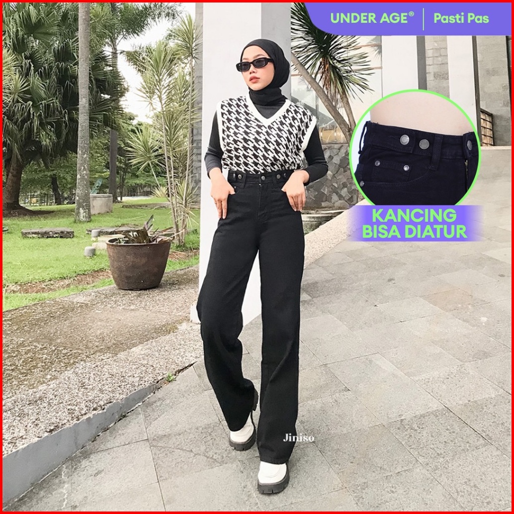Jiniso - Highwaist Adjustable Baggy Jeans 443 Under Age