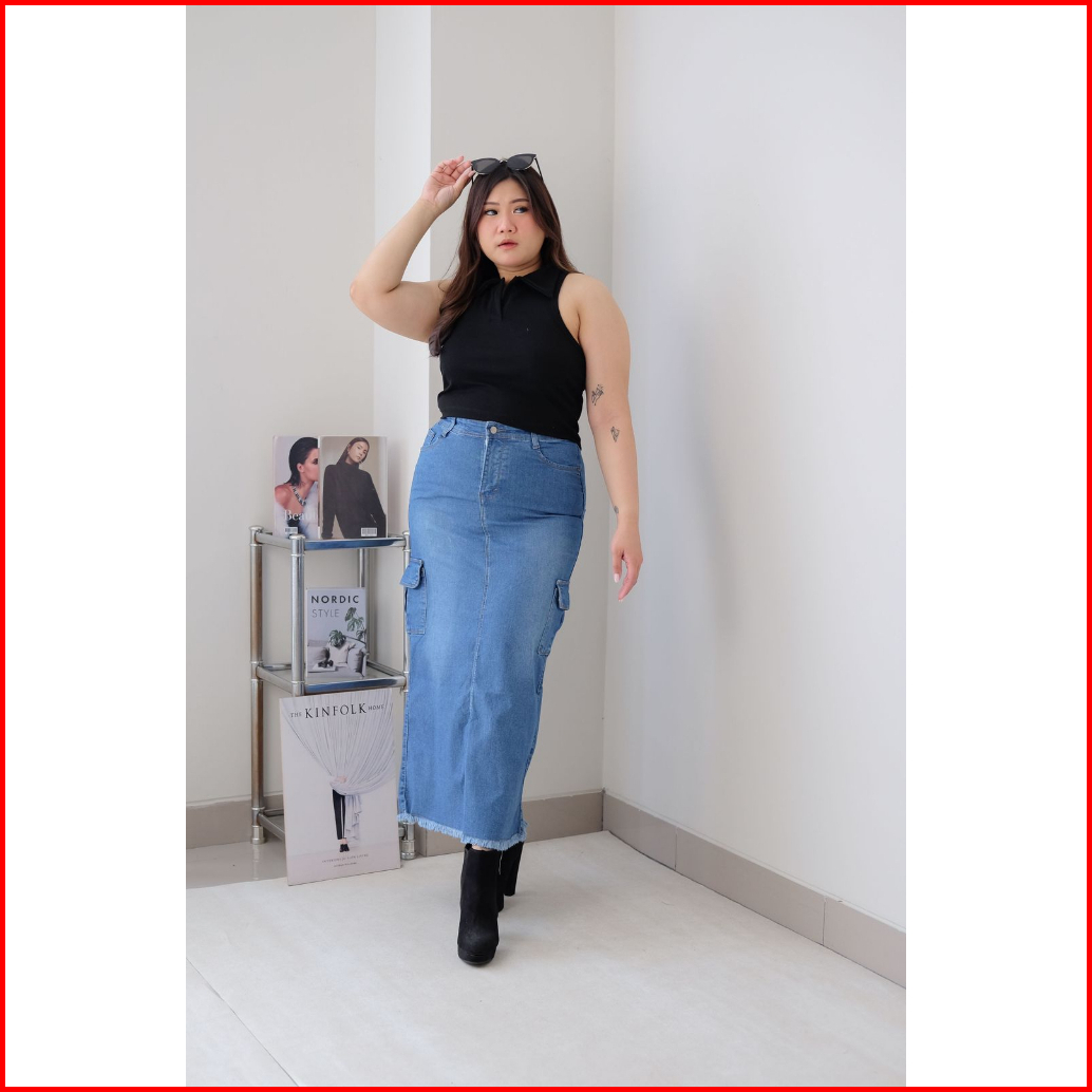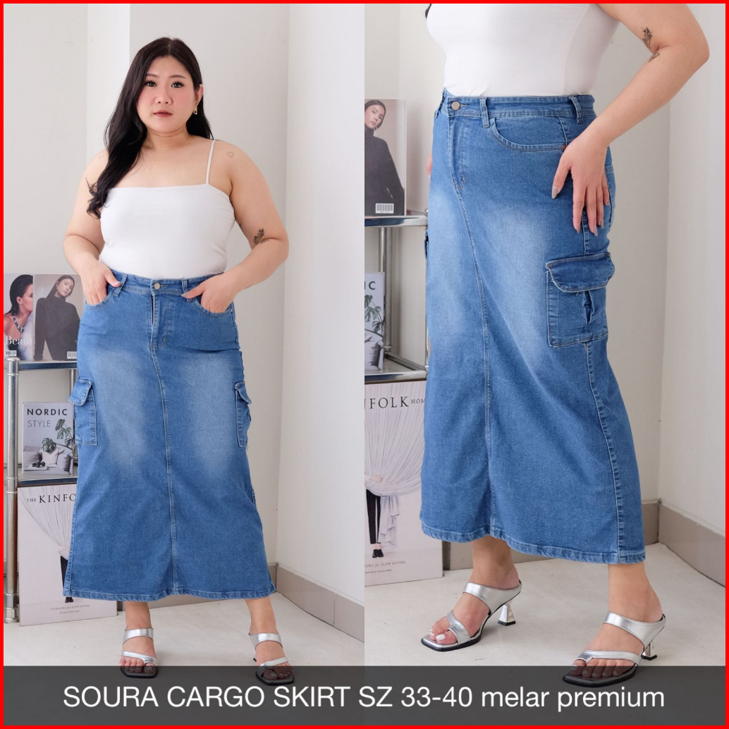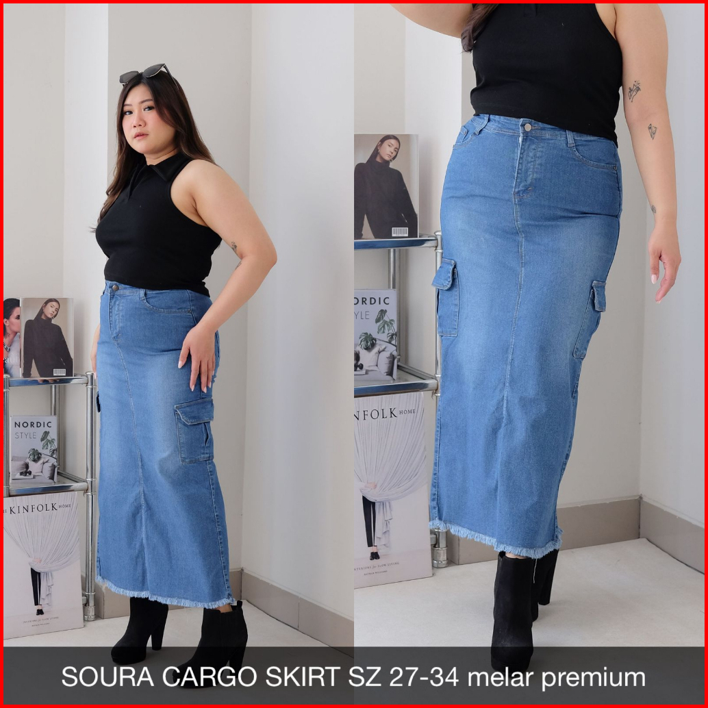 Rok Jeans Wanita Soura Cargo Skirt
