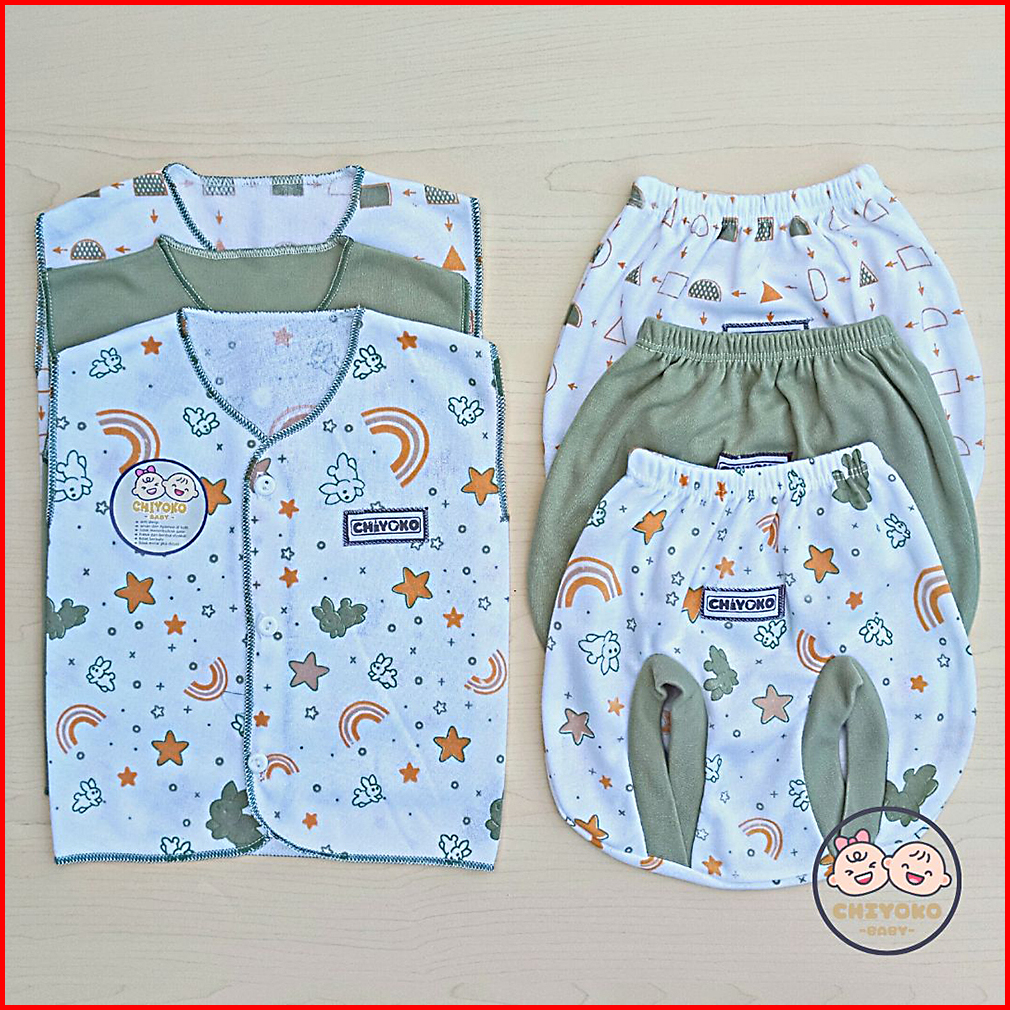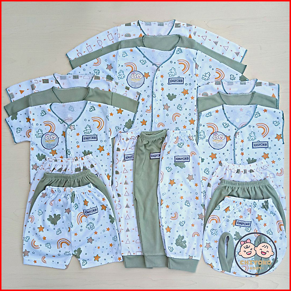 18 Pcs 9 Stel Baju Bayi Celana Bayi Setelan Baju Bayi Baru Lahir Serian Hijau Chiyoko Baby Sni