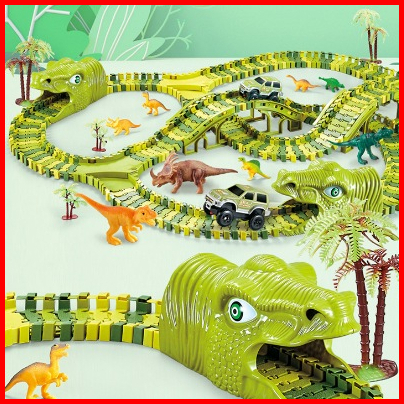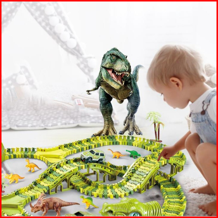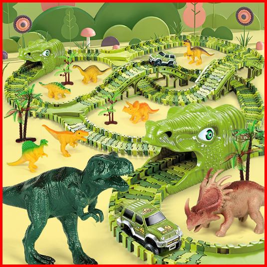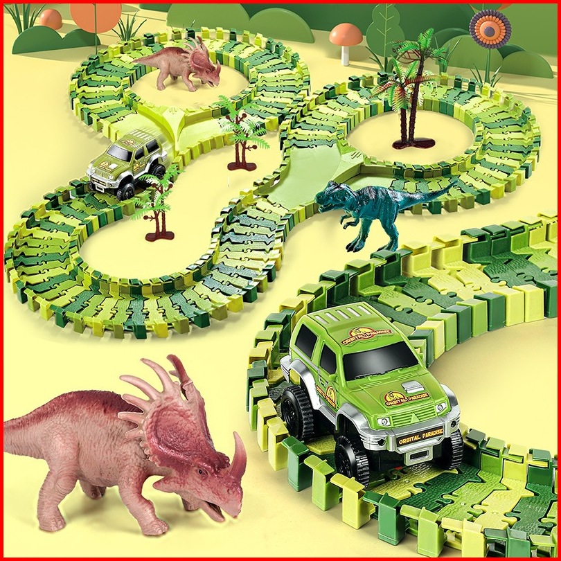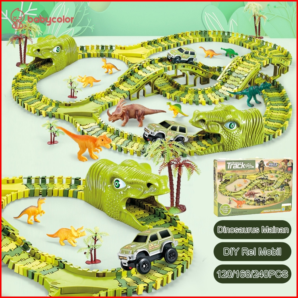 Babycolor Dinosaurus Track Mobil Set Mainan Diy Rel Mobil Mainan Edukatif Anak 128 198 270pcs