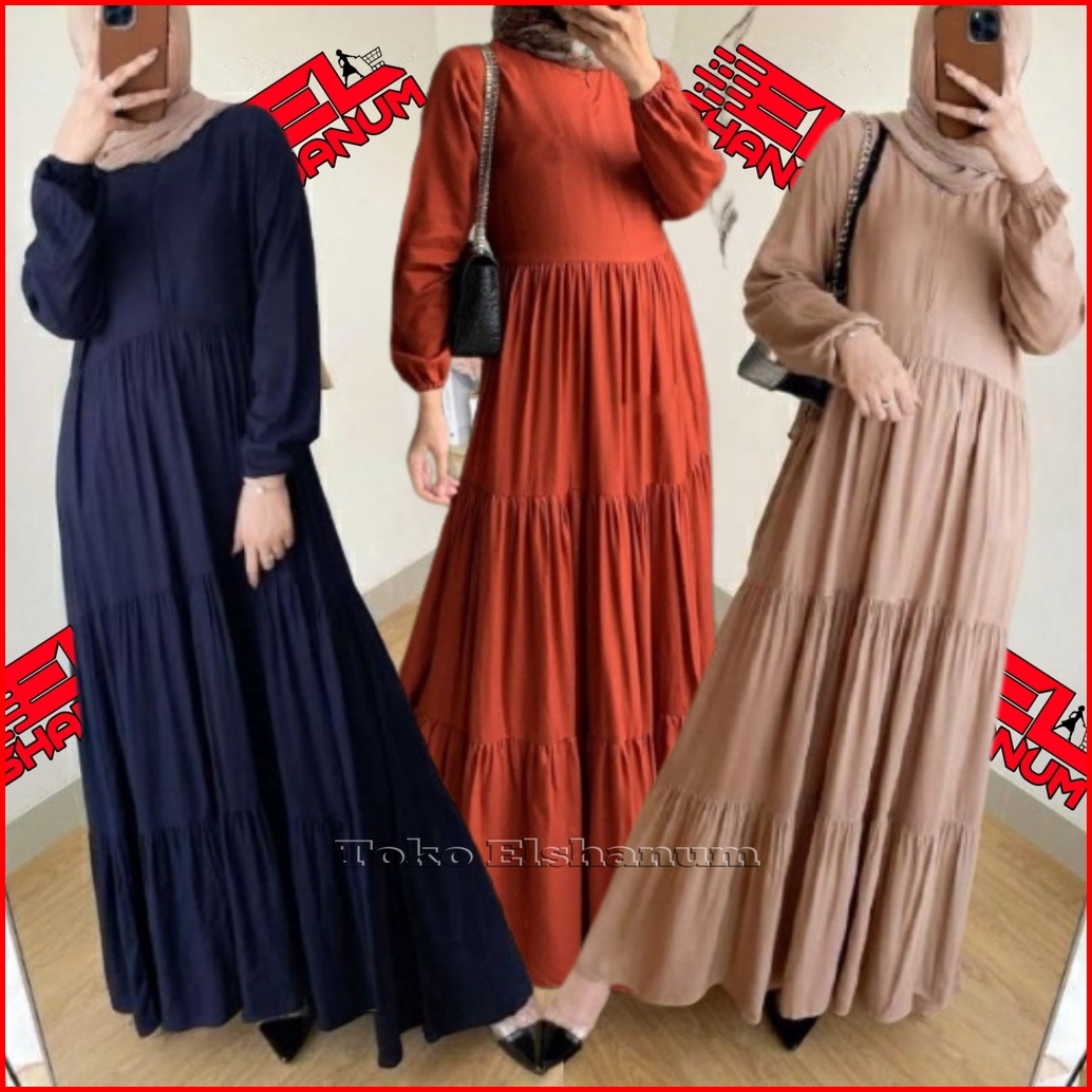 Gamis Syari Twill Polos Terbaru Rayon Kandel Super Premium Gamis Jumbo Busui Lengan Panjang Kerut Murah Baju Muslim Wani