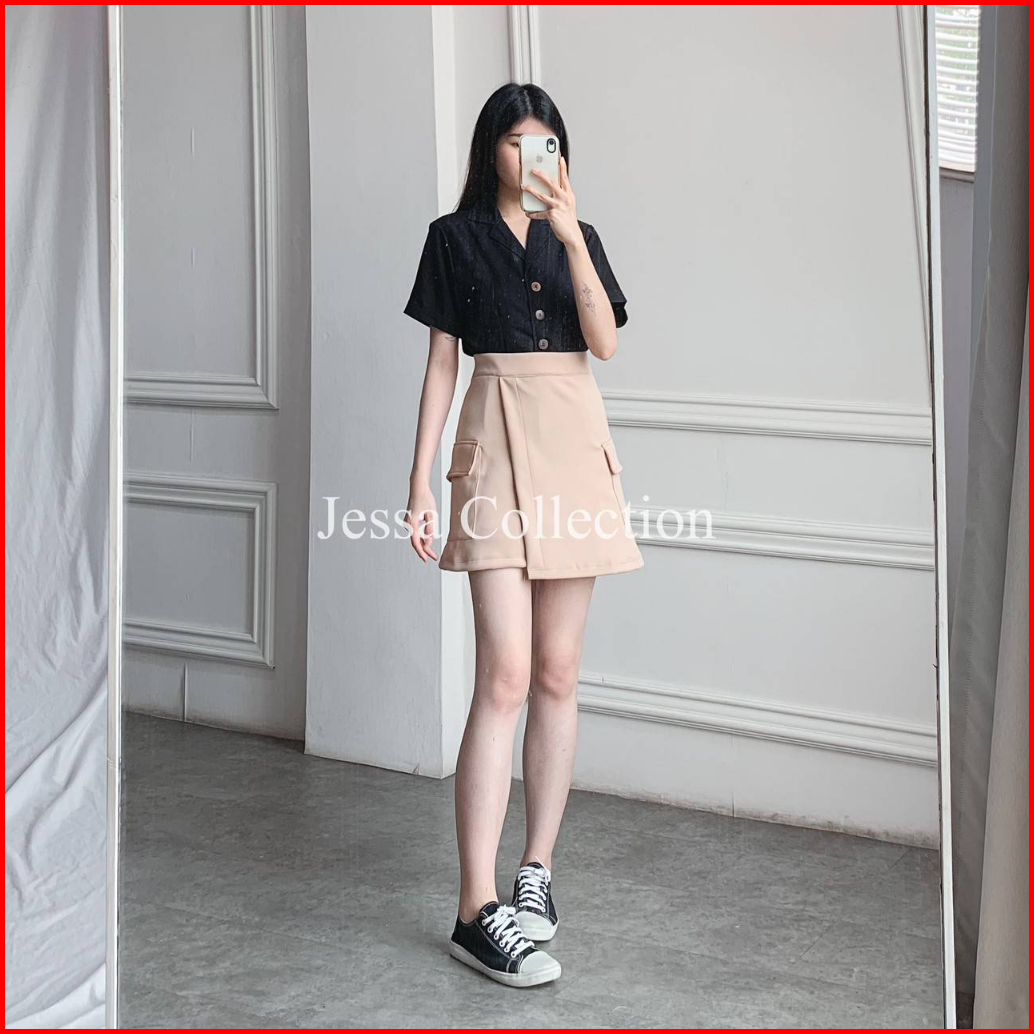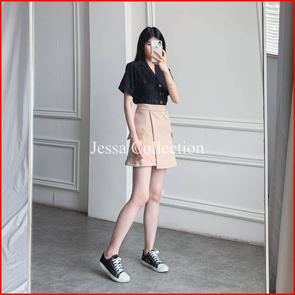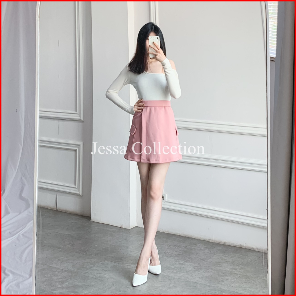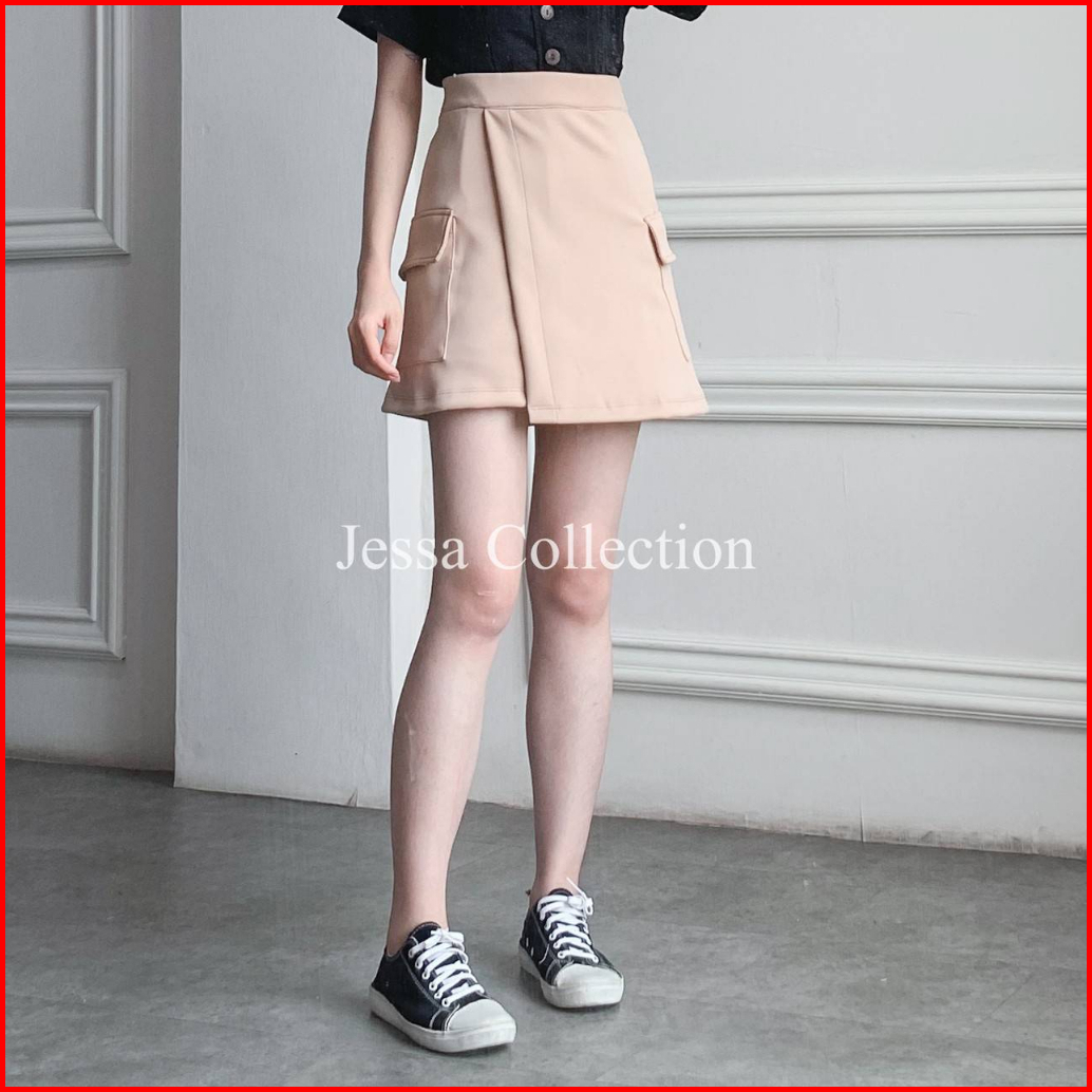 Skort Mini Pocket Cozy Fg Rok Celana Pendek Bahan Scuba Skort Casual Simple