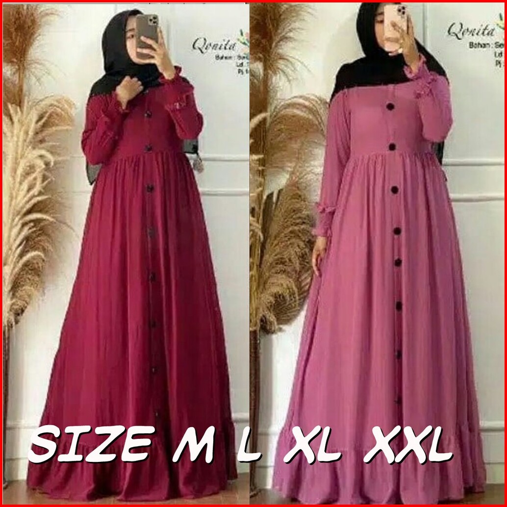 Plain Dress Size M L Xl Xxl Maxi Dress Gamis Jumbo Busui Wanita Terbaru