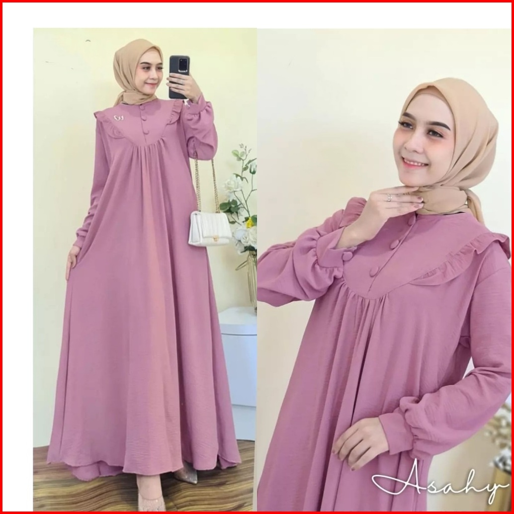 Gamis Wanita Asahy Maxy Size M L Xl Xxl Bahan Crinkle Airflow Kombi Remple Adem Nyaman Di Pakai Gamis Pesta Gamis Syari