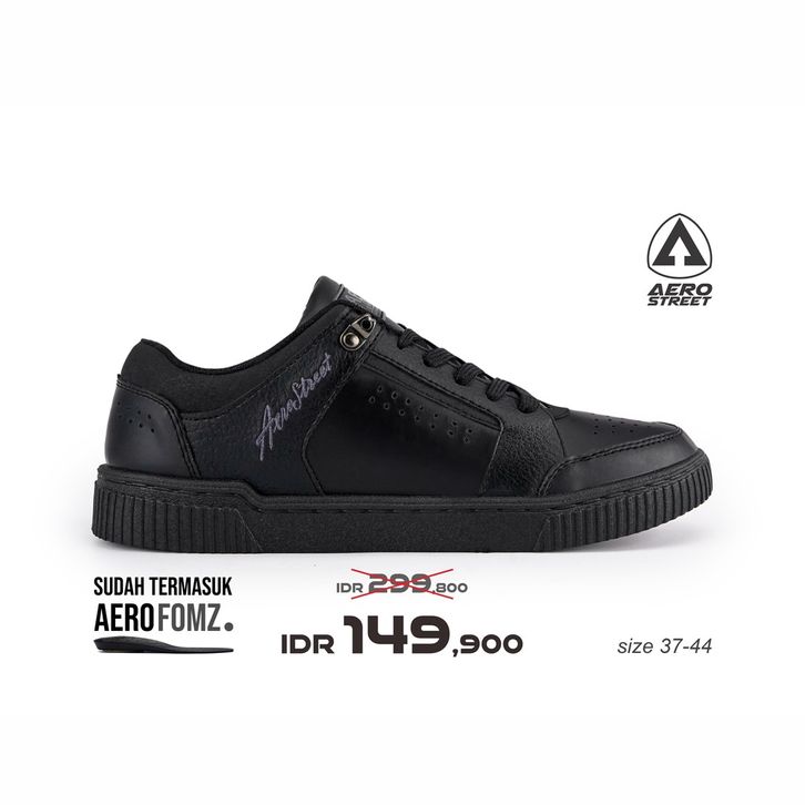 Aerostreet 37-44 Classic Hitam Hitam Hitam - Sepatu Sneakers Casual Pria Wanita