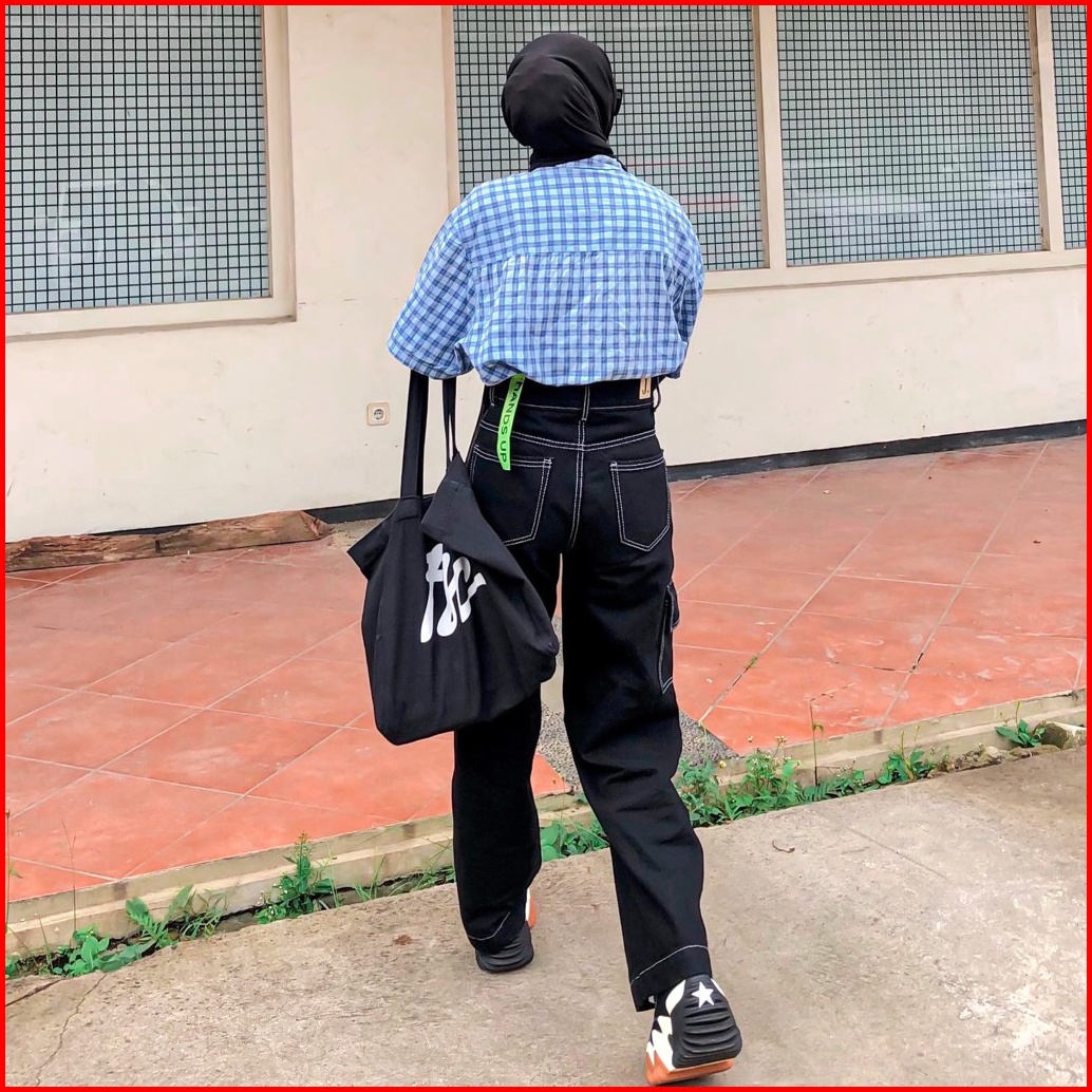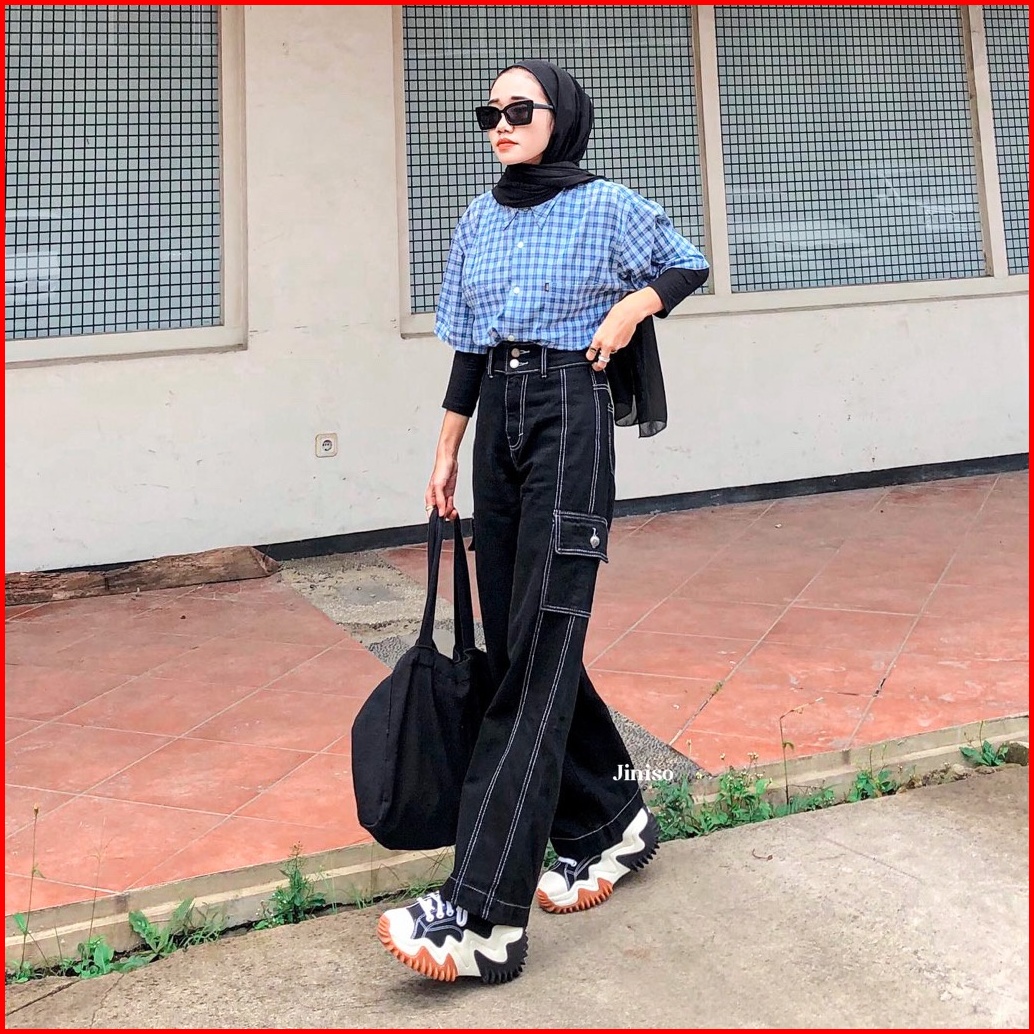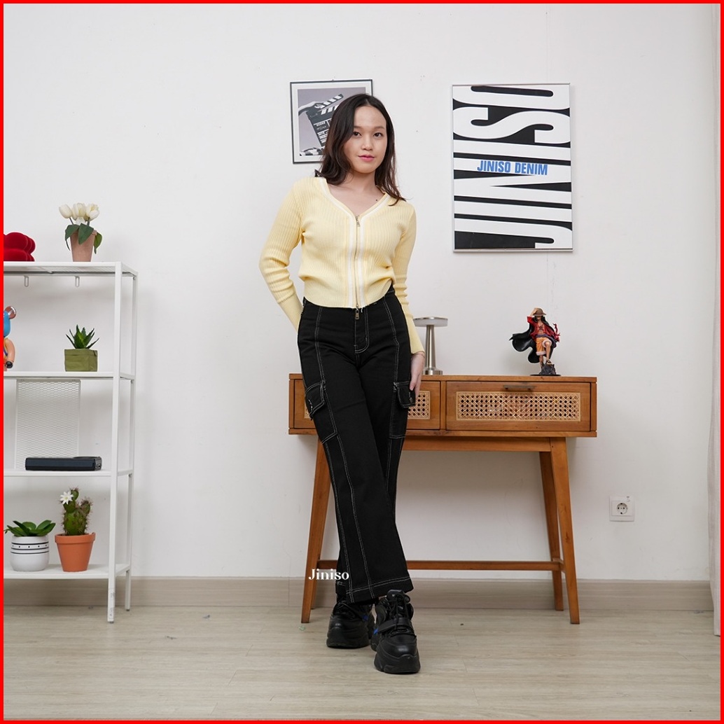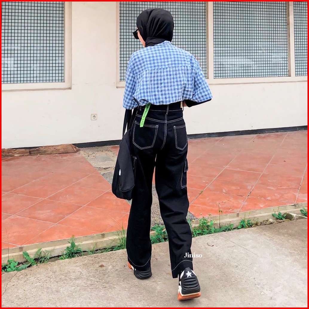 Jiniso - Highwaist Cargo Loose Jeans Black Oreo 402 Hands Up