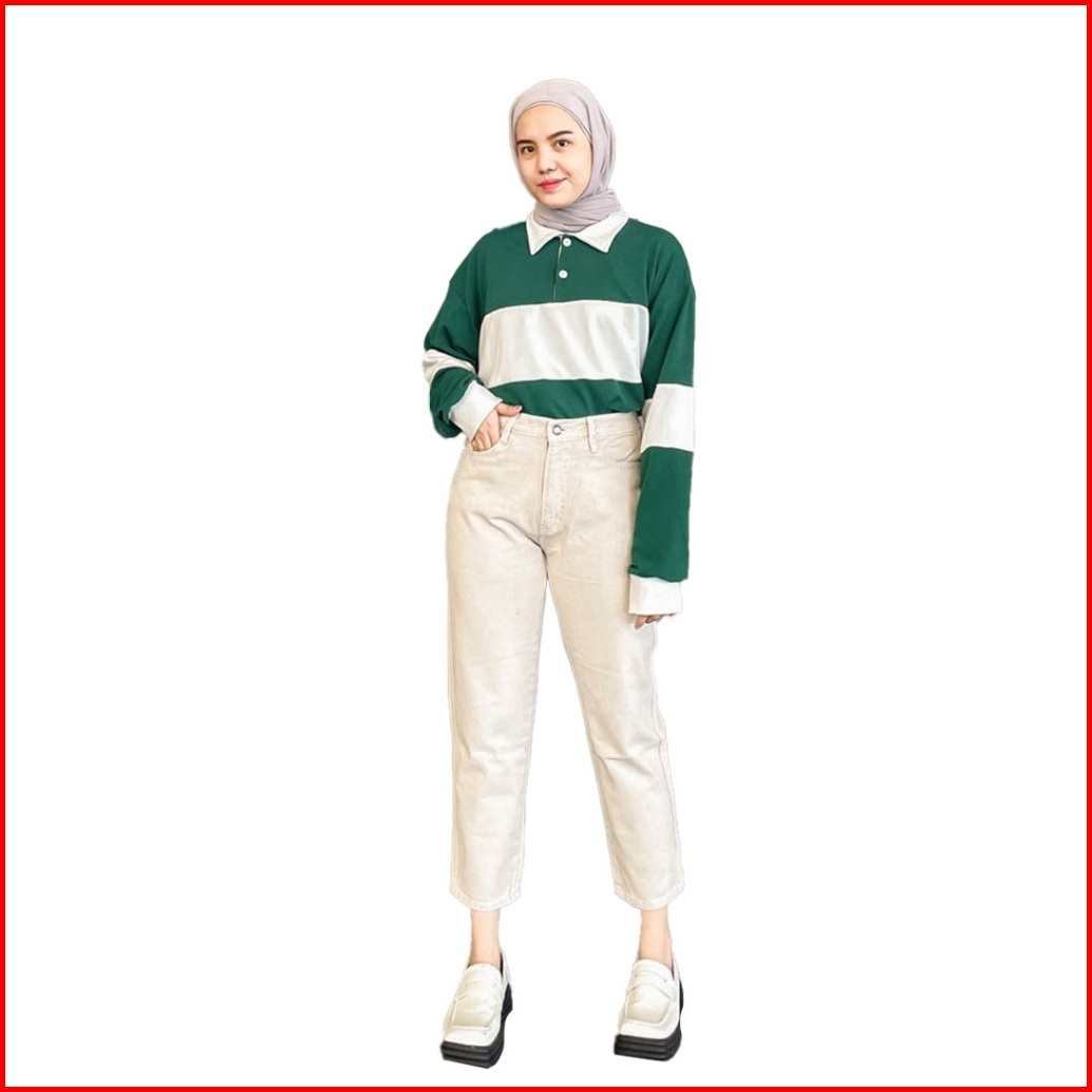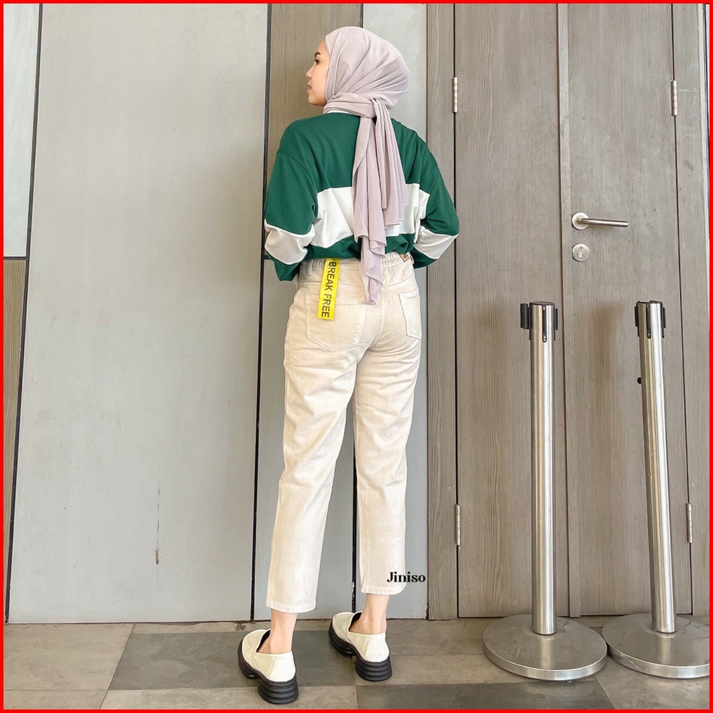 Jiniso - Highwaist Mom Jeans Khaki 357 Break Free