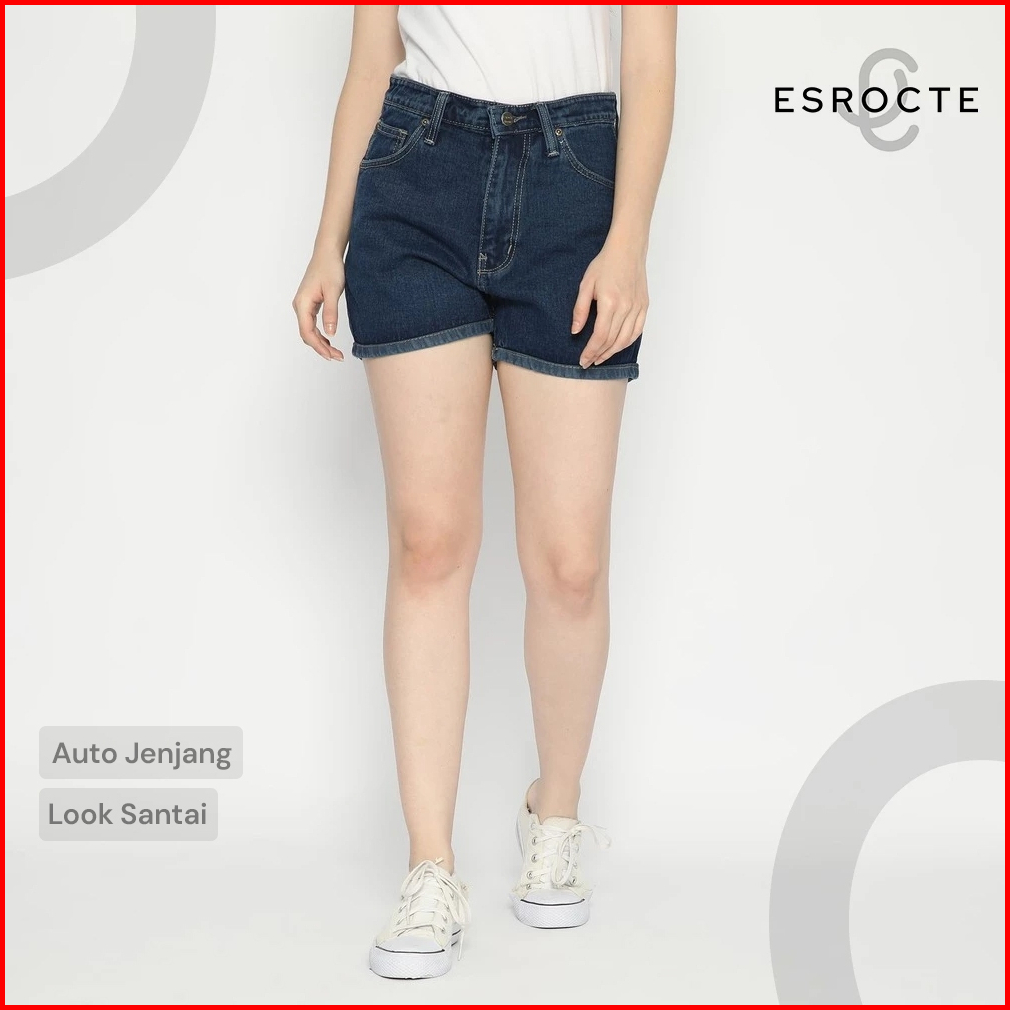 Esrocte Celana Hot Pants High Waist Jeans Wanita P10 - Navy Retro 26-38