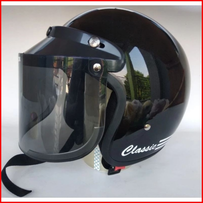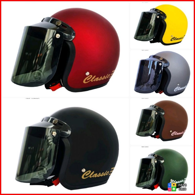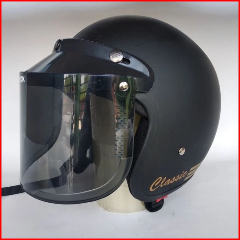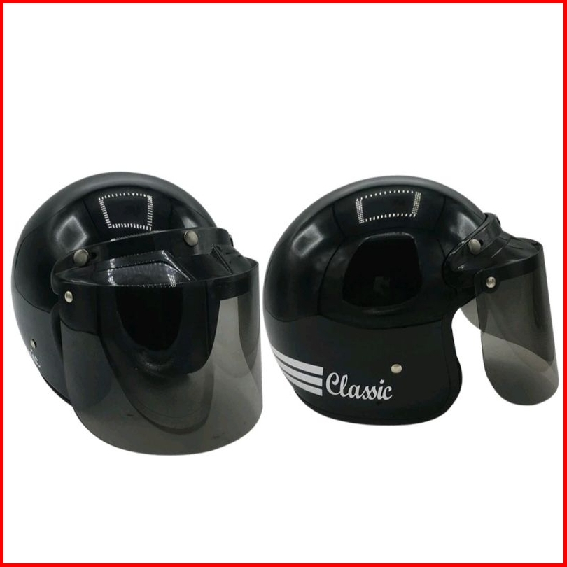 Helm Bogo Clasic Garis 3 Kaca Datar Dan Kaca Cembung