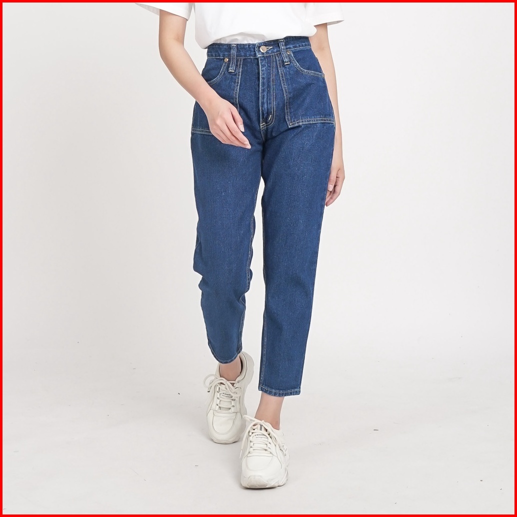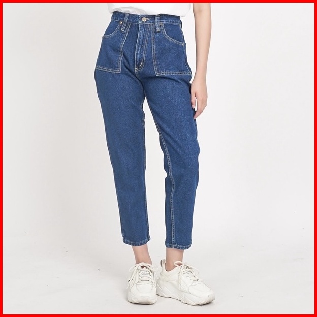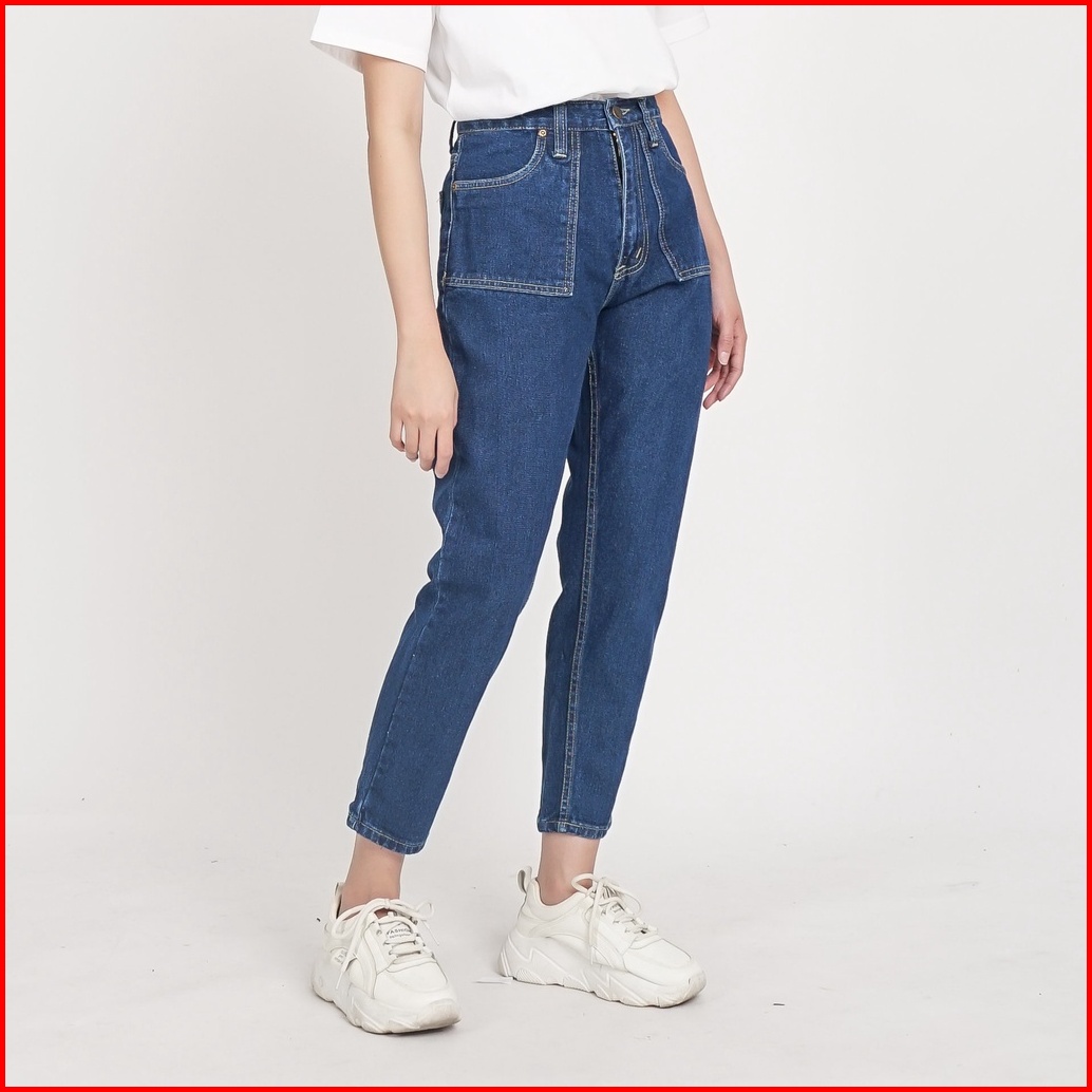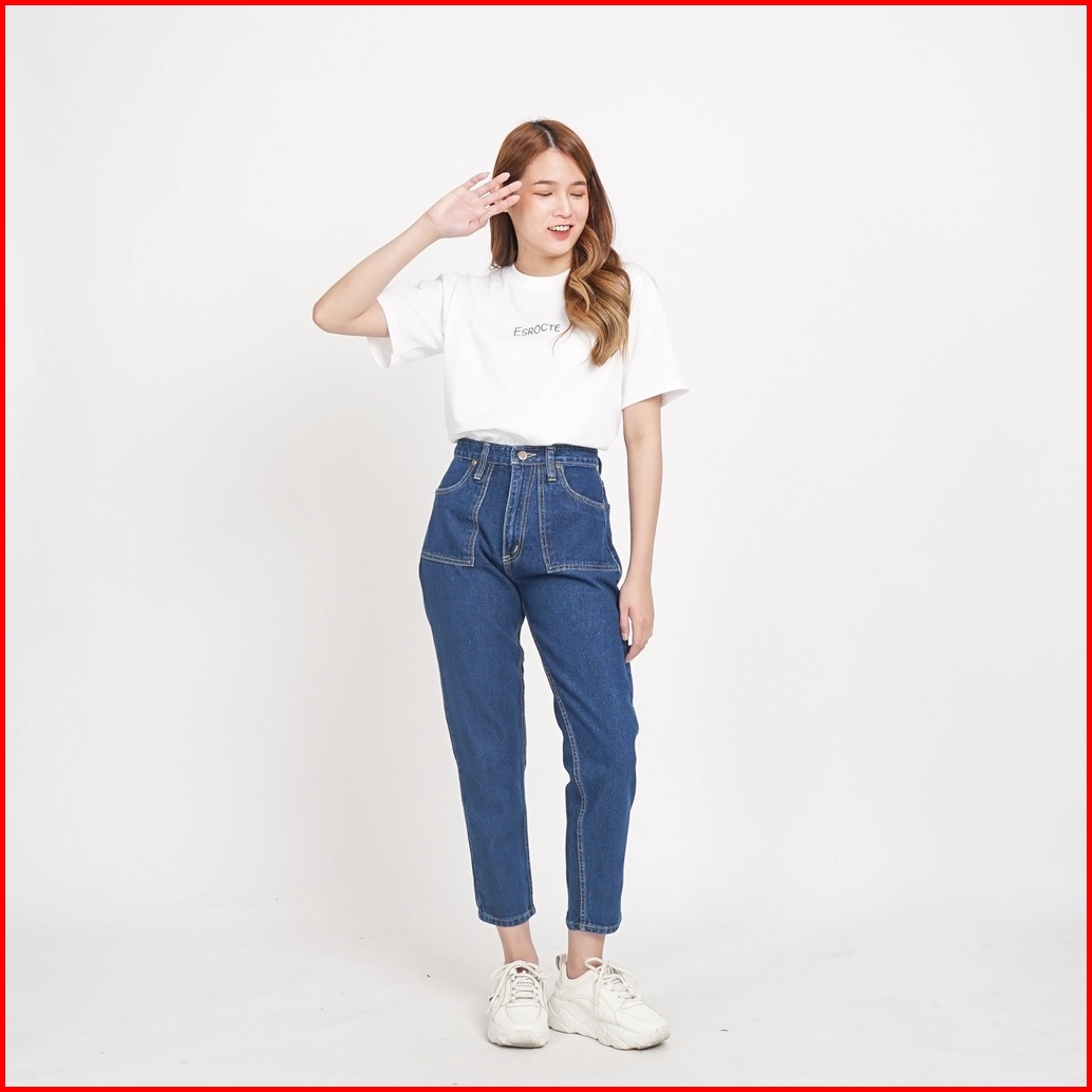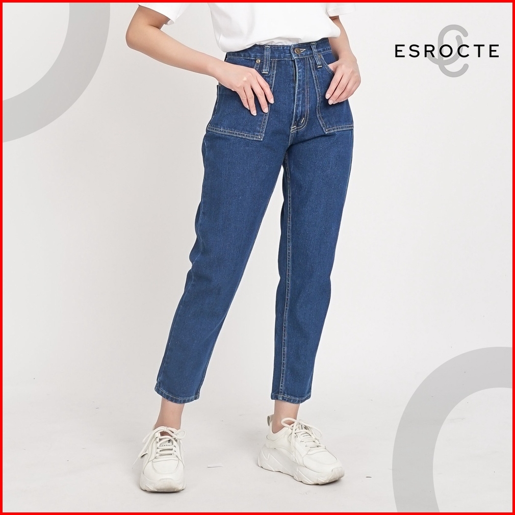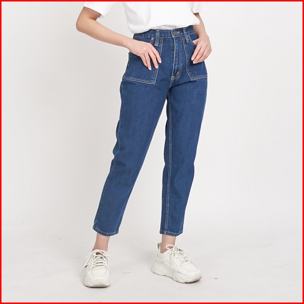 Esrocte Celana Boyfriend Pocket High Waist Jeans Wanita P24 - Navy 26-38