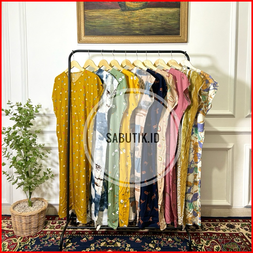 Daster Long Semata Kaki Lengan Pendek Rayon Motif Busui