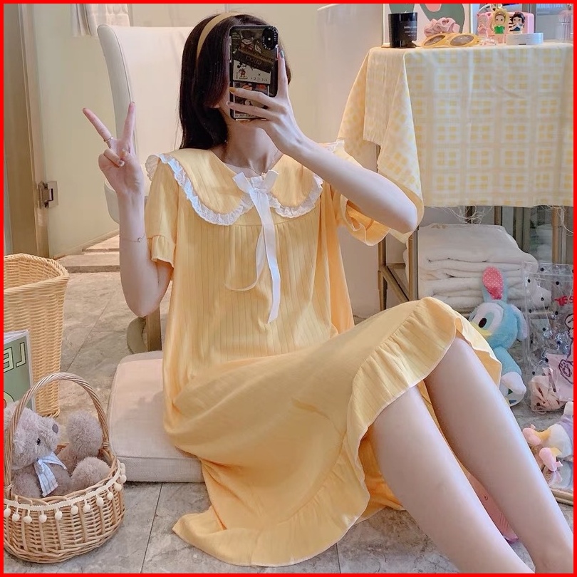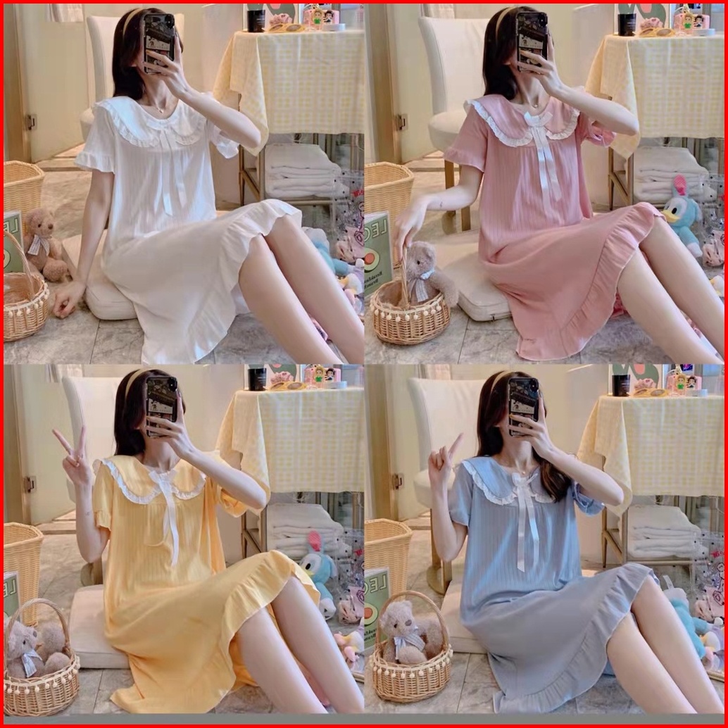 Feminin Baju Tidur Daster Wanita Sleepwear Perempuan Polos Lucu Kawaii