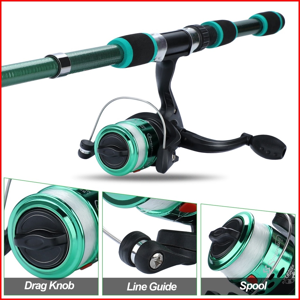 Sougayilang 1.8m 6 Bagian Spinning Fishing Rod Reel Set Fiber Glass Telescopic Untuk Air Tawar Anak-anak Fishing Pancing