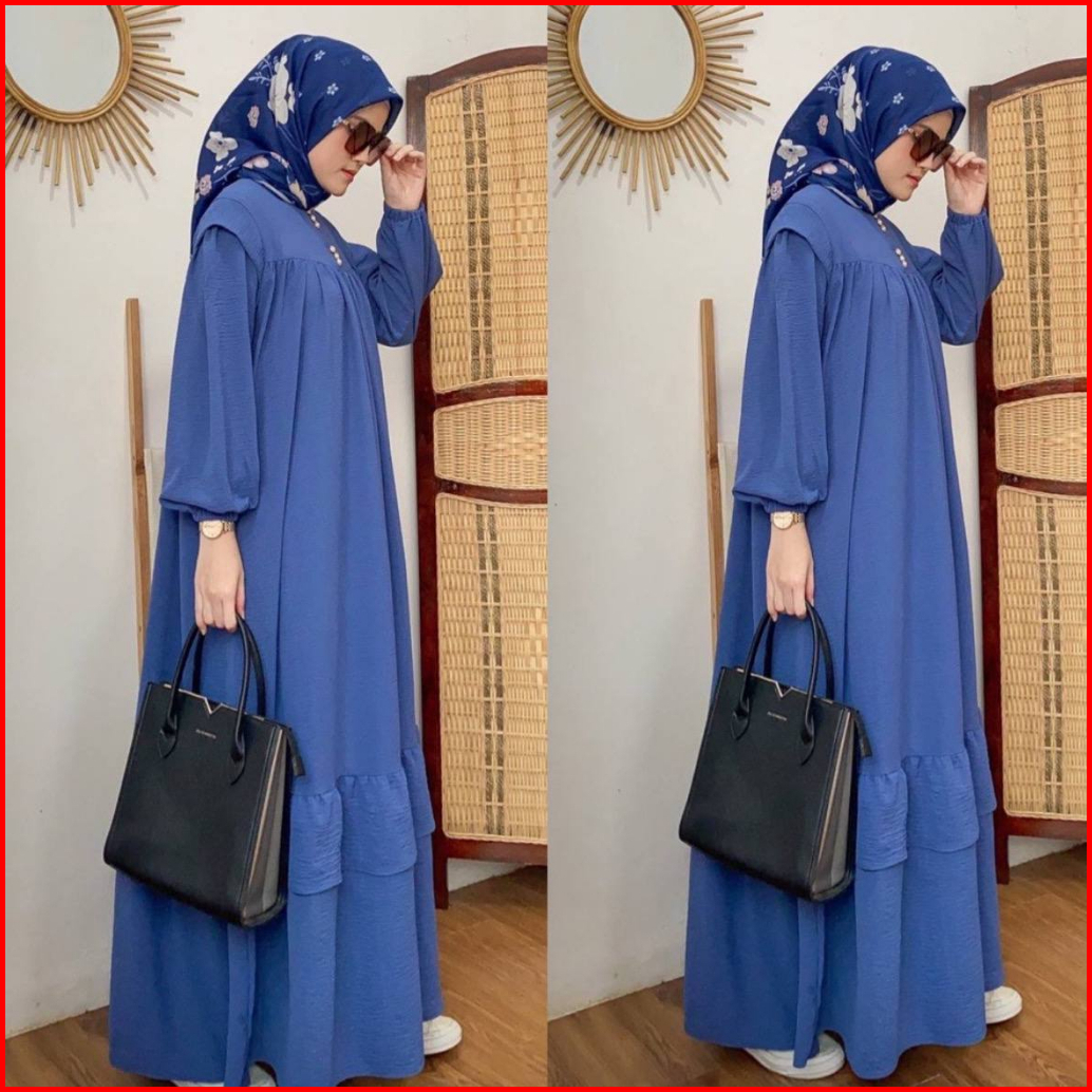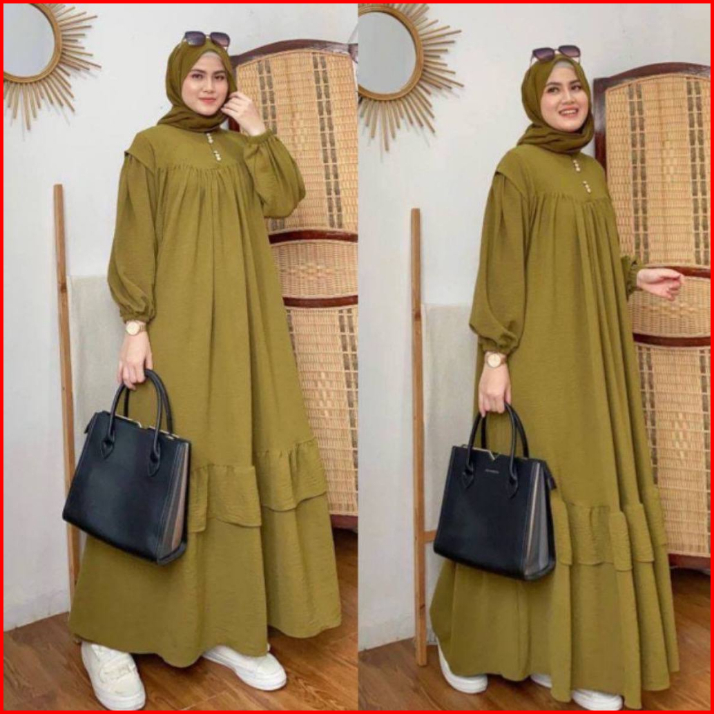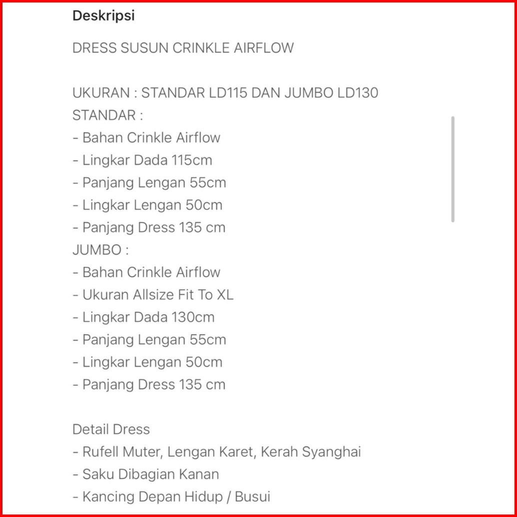 Dress Crinkle Airflow Ld130 Allsize Dress Gamis Susun Bahan Crinkle Airflow Busui Kancing Dibagian Depan Gamis Polos Jum