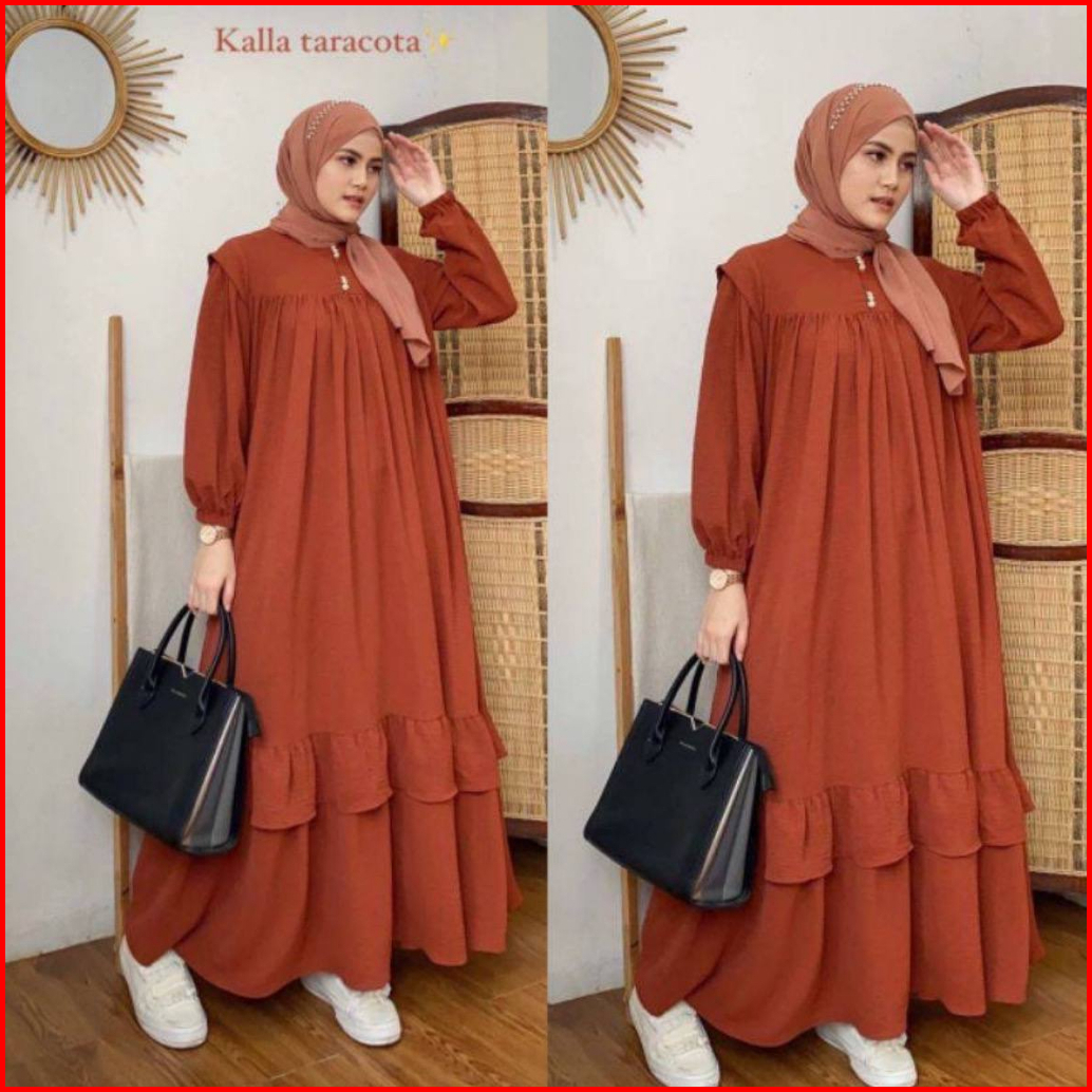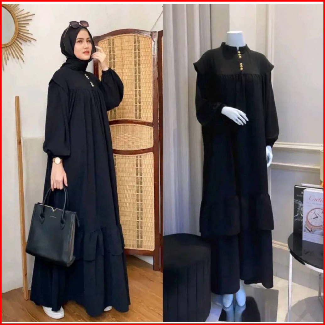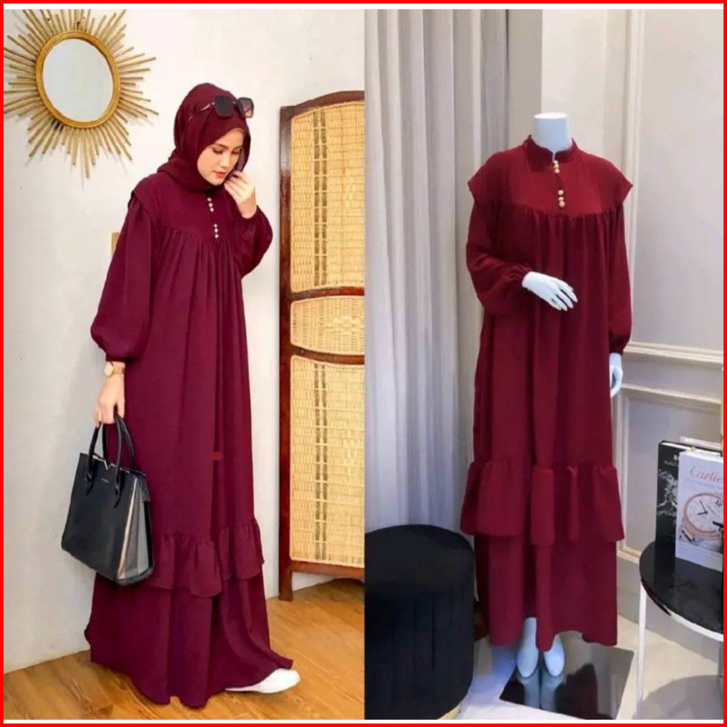 Dress Crinkle Airflow Ld130 Allsize Dress Gamis Susun Bahan Crinkle Airflow Busui Kancing Dibagian Depan Gamis Polos Jum
