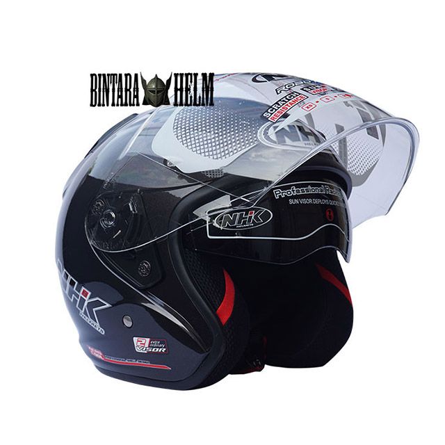 HELM NHK ORIGINAL HELM MHK R1 GUNMETAL ORI HELMET HALF FACE DOUBLE VISOR NHK