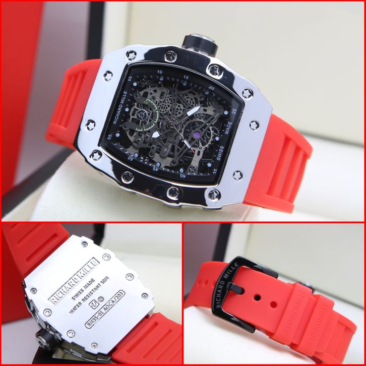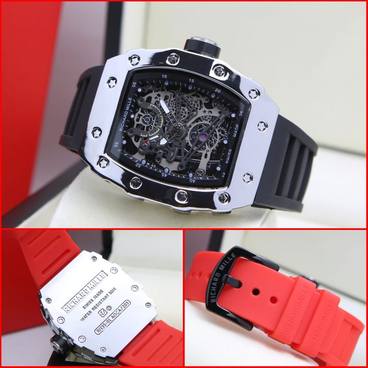 Jam Tangan Pria RM Rubber R71M Body Silver Free Box & Baterai