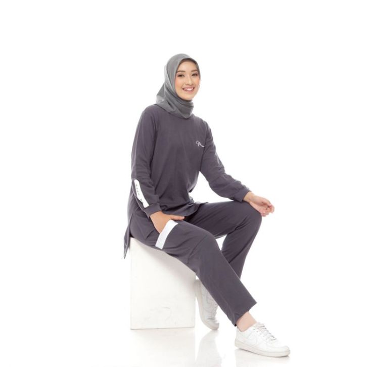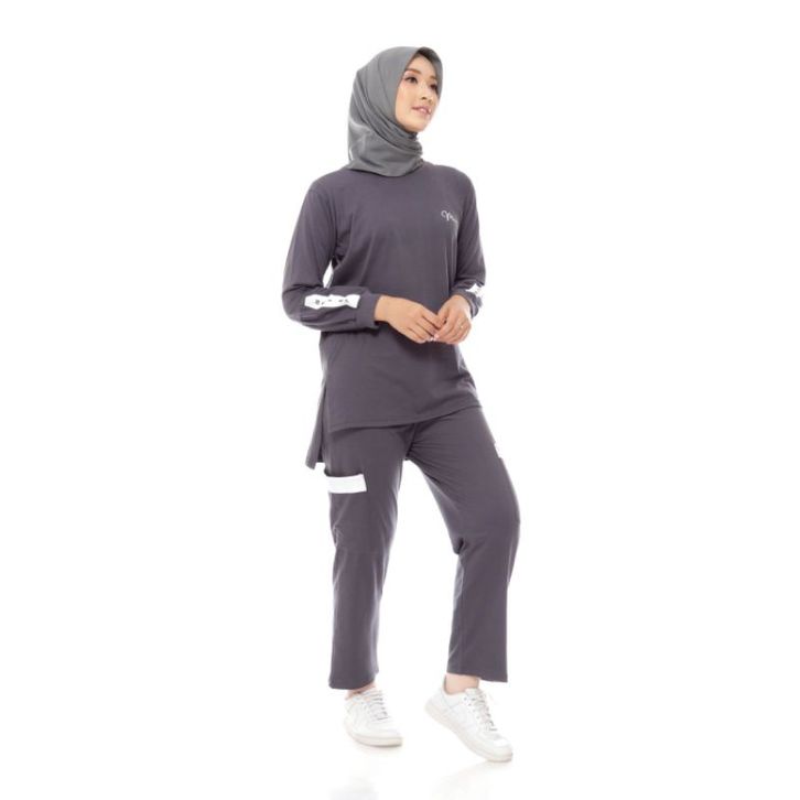 Setelan Olahraga Wanita Jumbo Baju Kaos Sport Muslimah Stelan Senam Sepeda Gowes Lari