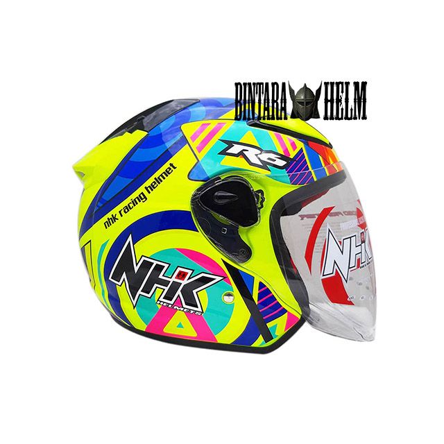 HELM NHK ORIGINAL HELM MHK R6 PIGMENT YELLOW FLUO ORI HELMET HALF FACE SINGLE VISOR NHK