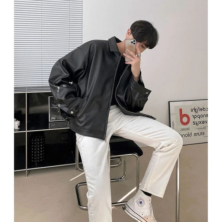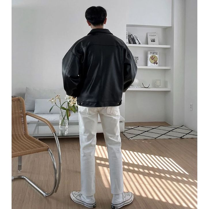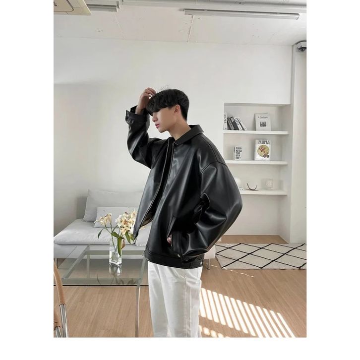 OUTERIND Jaket Kulit Pria Wanita Clasic Style Oversize Terbaru 2026