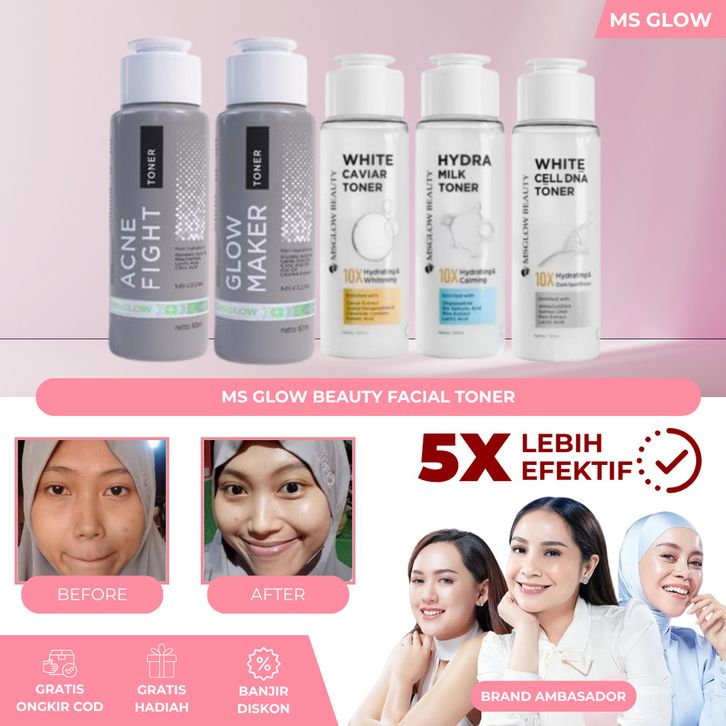 [Mall]Ms Glow Toner Glowing Maker Acne Fight White Cell Hydra Milk White Caviar Original 100% - Ms Glow Official Store